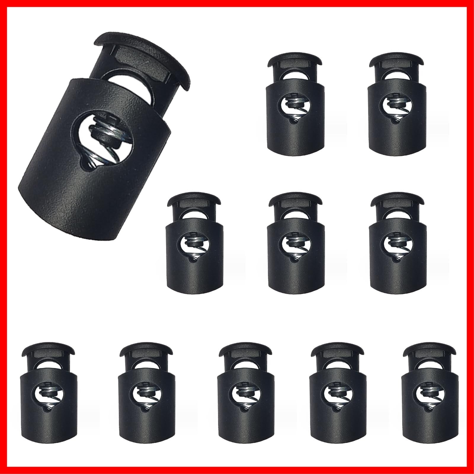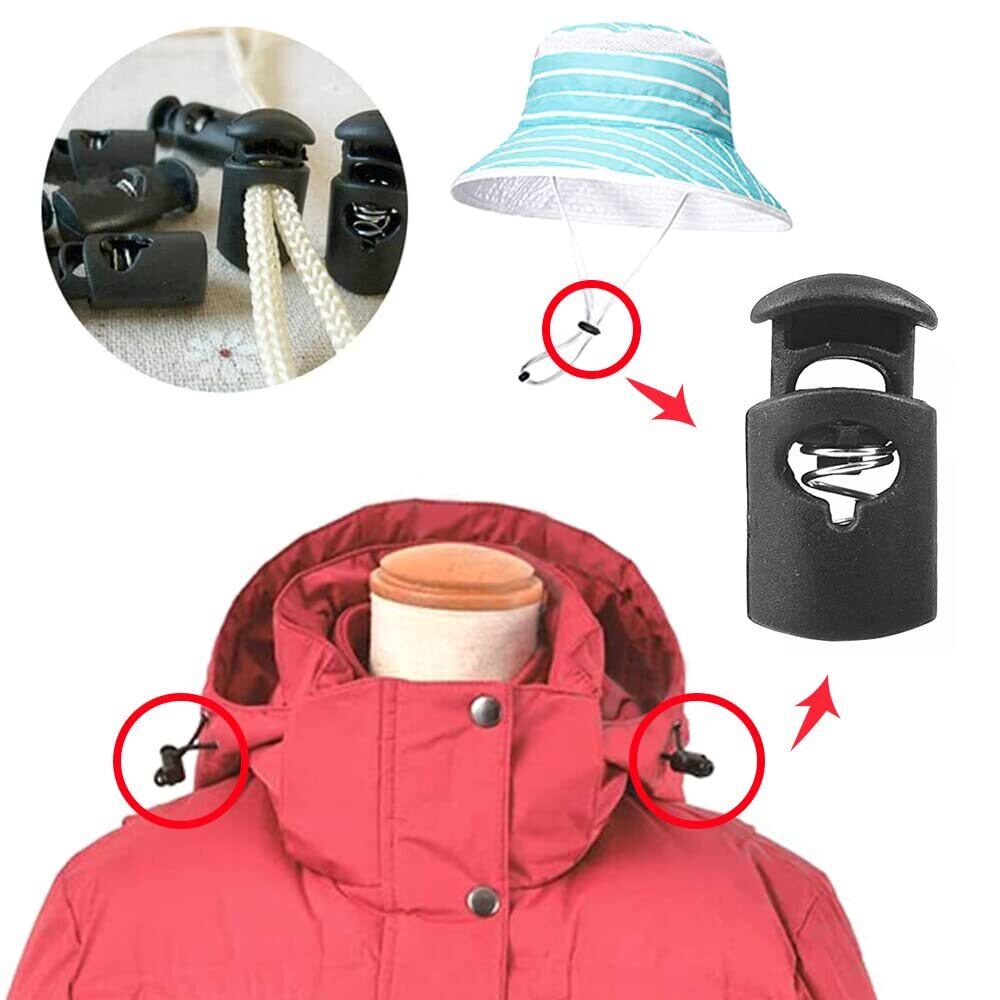 [YINKE] スプリングコードストッパー 穴径約8mm 黒 コードロック 樽型 補修用 スポーツウェア用 トグルストッパー 交換 リュックサック 多用途 (10個入り)