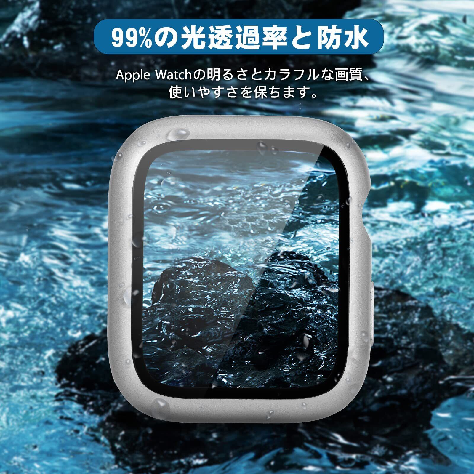CAERMA Apple Watch用 ケース iWatch Series 10/9/8/7/6/5/4/SE2/SE 44mm対応 超薄型 アップルウォッチ用 カバー 防水 硬度9H 強化ガラス 高透過率 高耐久 耐衝撃 全面保護 Apple Watch用 カバー シルバー