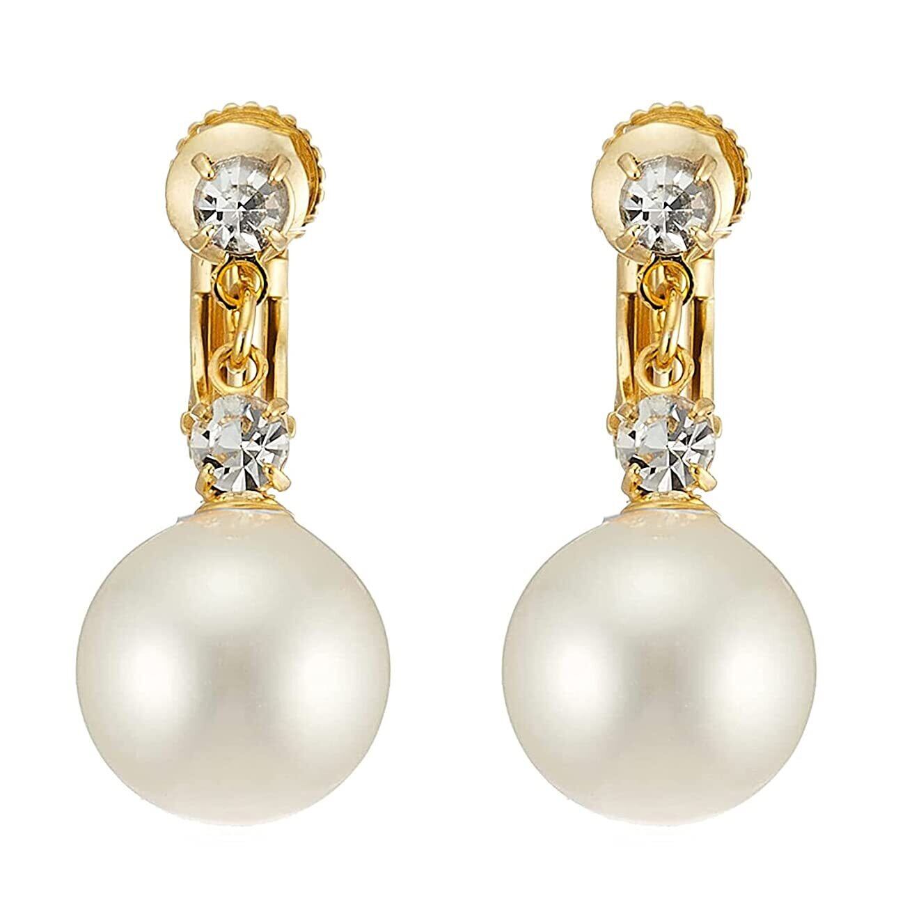 [ジュエリーショップエム] 日本製 直結 スワロフスキー パール 真珠 シンプル イヤリング ねじ式 金属アレルギー対応 レディース