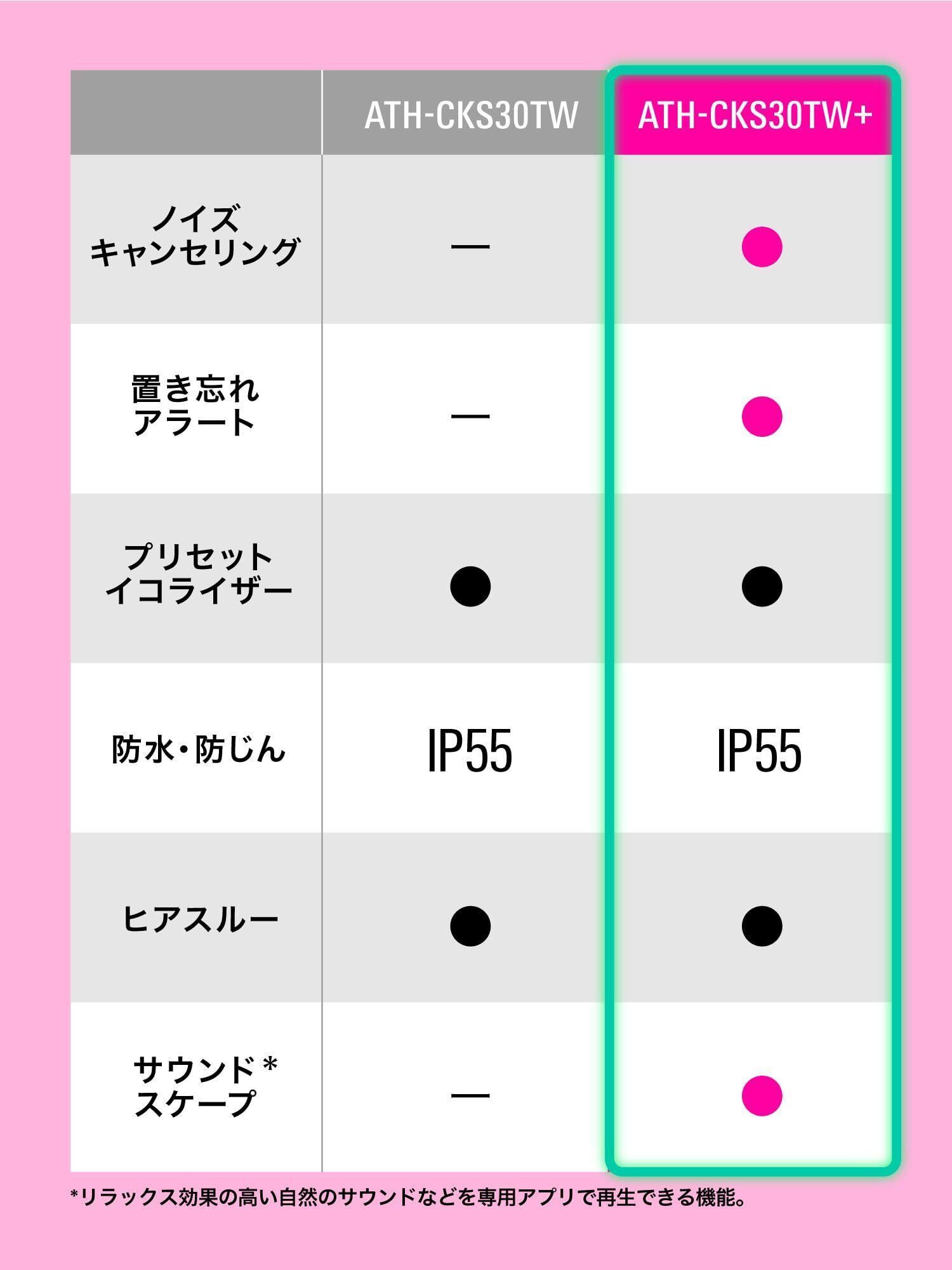 オーディオテクニカ ATH-CKS30TW+(E) ワイヤレスイヤホン bluetooth ノイズキャンセリング 重低音 最大約20時間再生 IP55 防水防塵 マルチポイント対応 小型軽量 アプリ対応 ヒアスルー 低遅延モード 置き忘れアラート TBK スケルトン