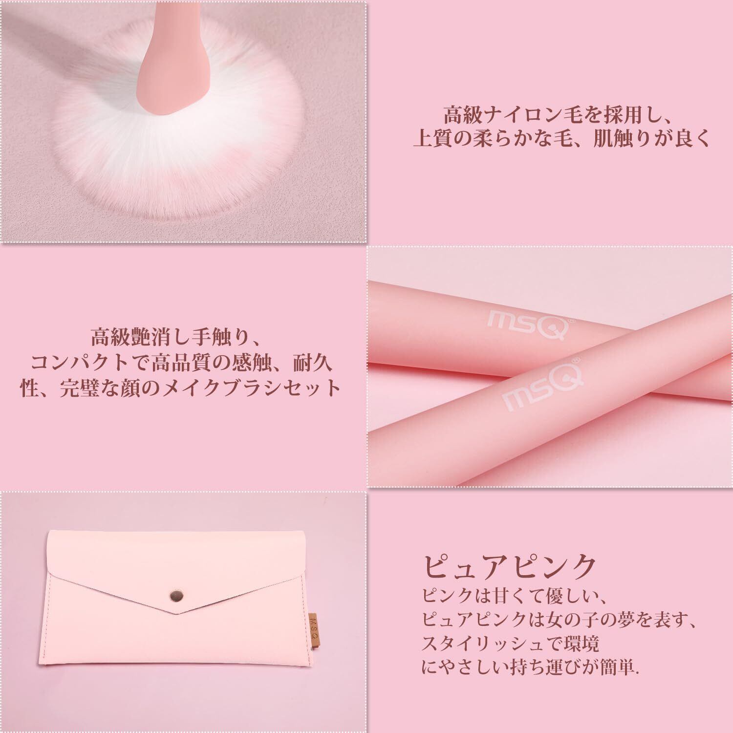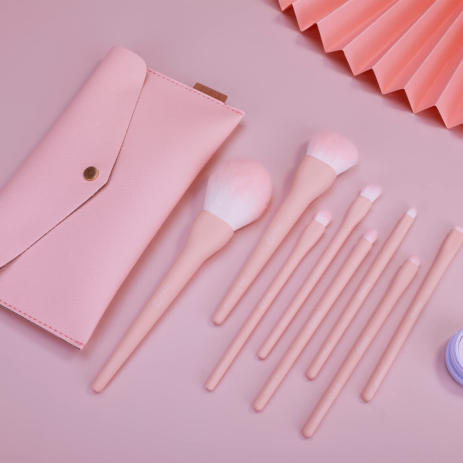 MSQ メイクブラシ 8本 人気 メイク 筆 アイシャドウブラシ 収納ポーチ付き 高級繊維毛 超柔らかい 日常の化粧 携帯便利 敏感肌適用メイクブラシセット ギフトセレクション (ピンク)