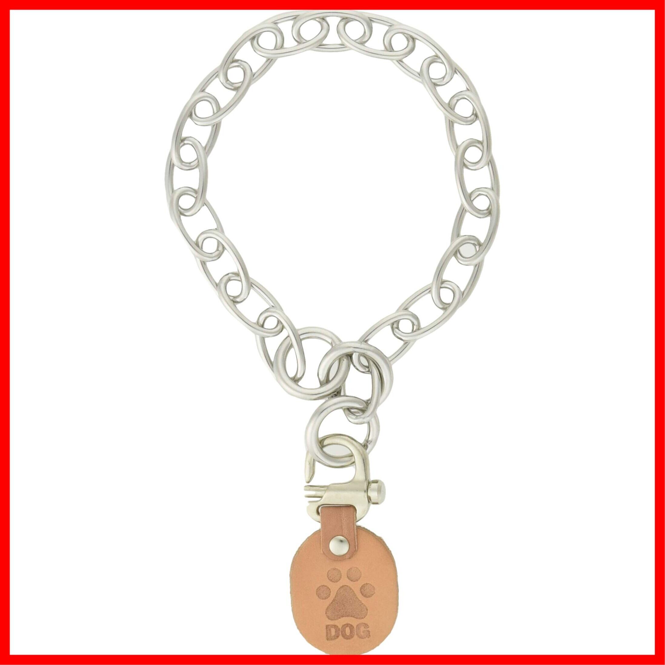 チェーンが小判型になっており、毛切れが少ない。迷子札シール付き。散歩時の首の締止・首抜けに使用するストッパー付き。
