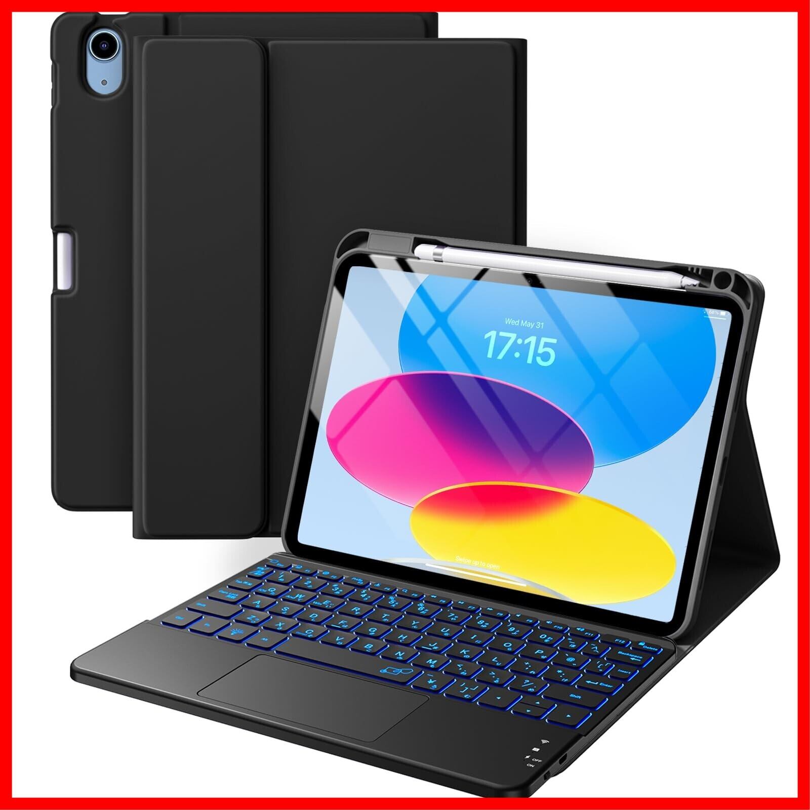 HETHOT iPad用 キーボード付きケース - 第11世代(A16,2025)/第10世代(2022) 11/10.9インチ 日本語JIS配列 7色バックライト防汚素材 脱着式 大容量バッテリー タッチパッド付きマグネット式 カラーキーボード ケース