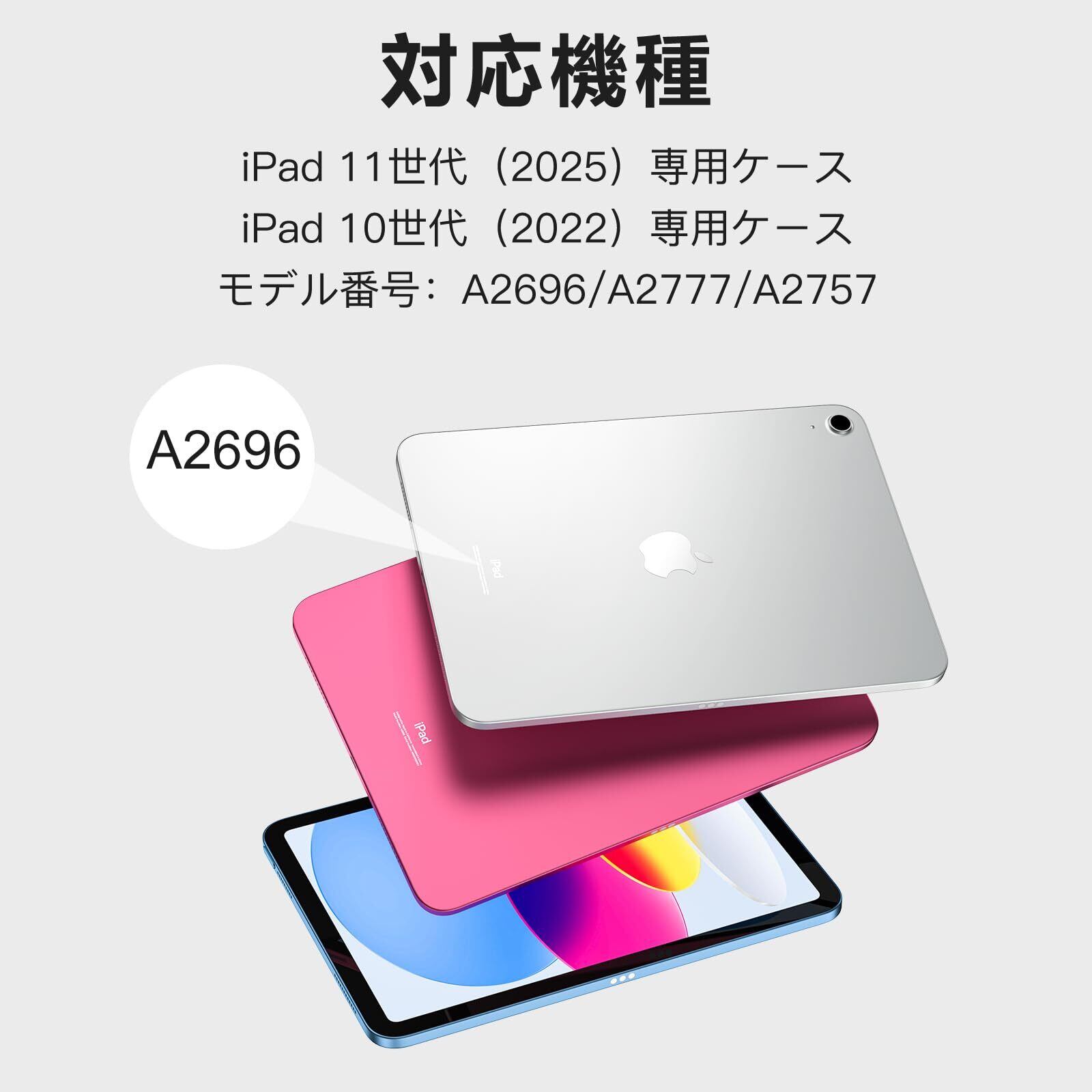 【対応機種】このキーボード ケースはiPad用 第10世代 10.9インチ( 2022年モデル:A2696、A2757、A2777)に対応しています。ご注文前にアイパッド裏面のモデルを確認ください。ご注意:本製品はiPadとApple pencilを含めません。ご注意:この製品の重量は830gです。