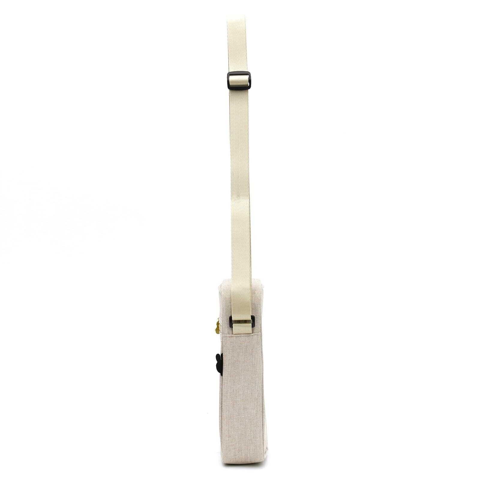 普段使いにも旅行のお供にもオススメなサイズのミニショルダーバッグ。肩掛けにしても斜め掛けにしても使いやすいバッグです。バッグ前面には2つのファスナーポケットが付いているので、小物収納に便利。内装にもポケットがついているので、荷物を仕分けて収納することができます。