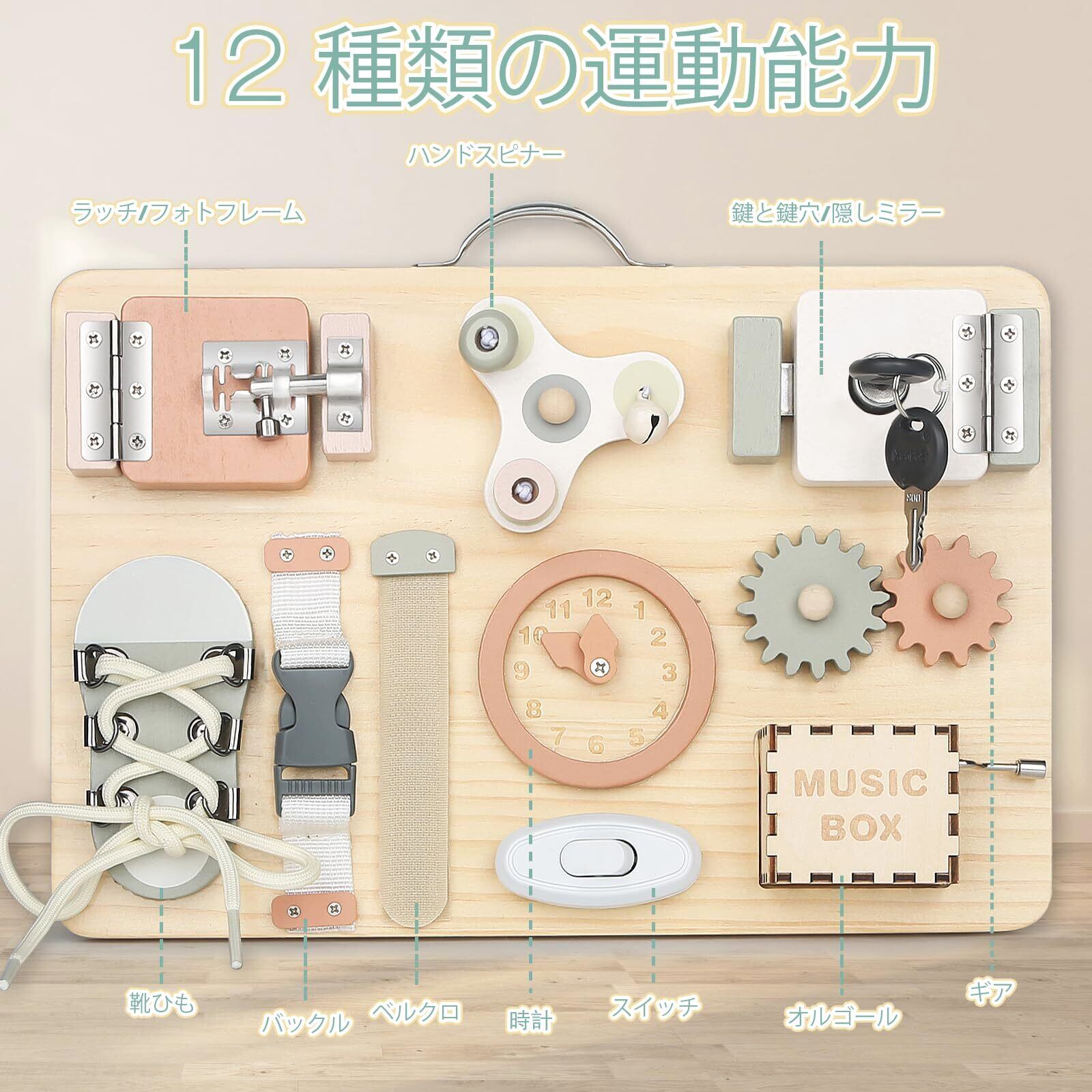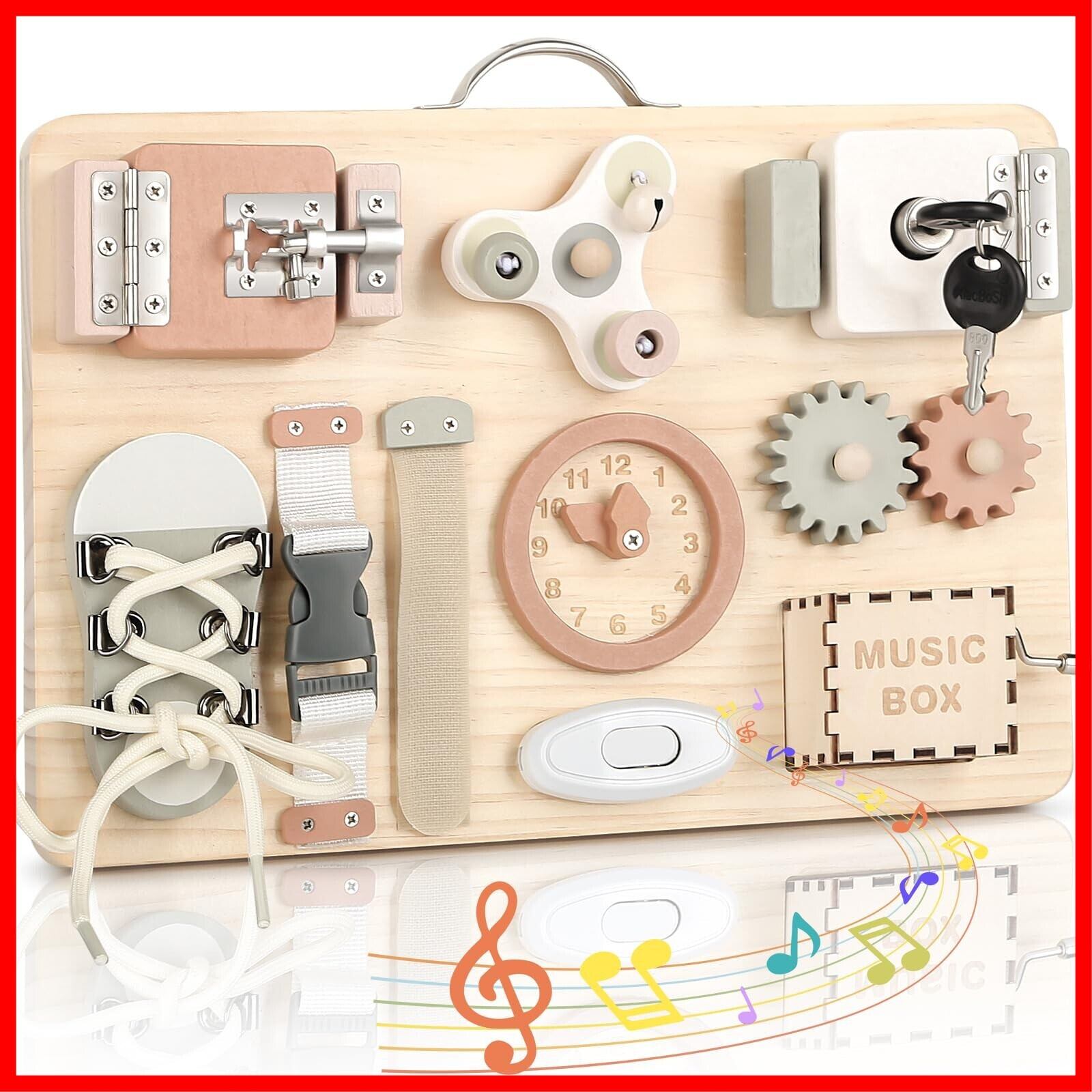 Joyreal モンテッソーリ ビジーボード - 知育玩具 1 2 3歳 誕生日プレゼント 玩具 女の子 男の子 子供のおもちゃ 木のおもちゃ 指先の知育 早期開発