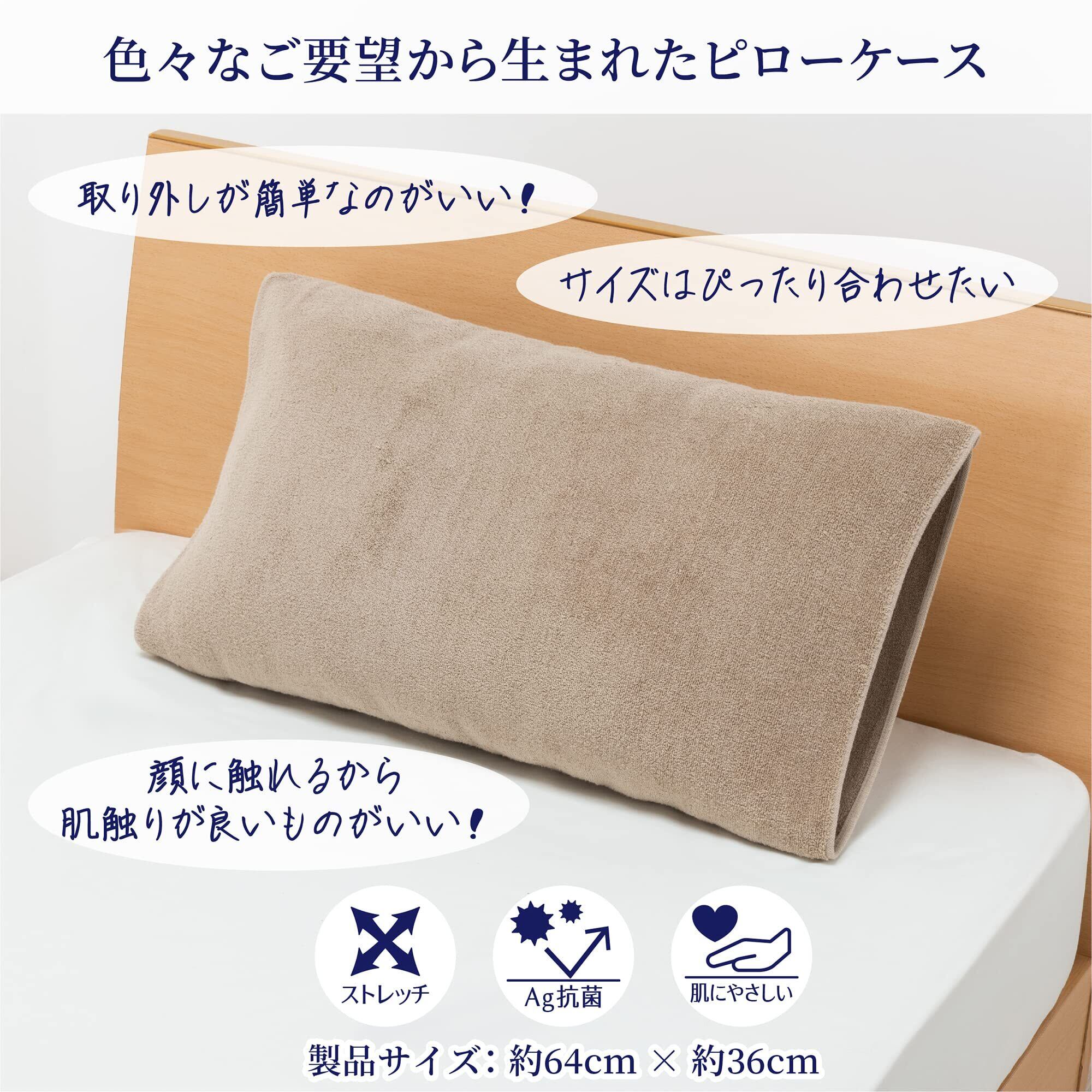 nishikawa【西川】 のびのび枕カバー Ag抗菌タイプ ベージュ 50X63cmのサイズの枕に対応 伸縮繊維なので多彩なサイズ かたちの枕にのびのびフィット やさしい肌触りのふわふわタオル パイル地 デザインが違うリバーシブルタイプ 洗える プレゼント やわらか タオル地 パイル ピローケース まくらカバー | hananoki