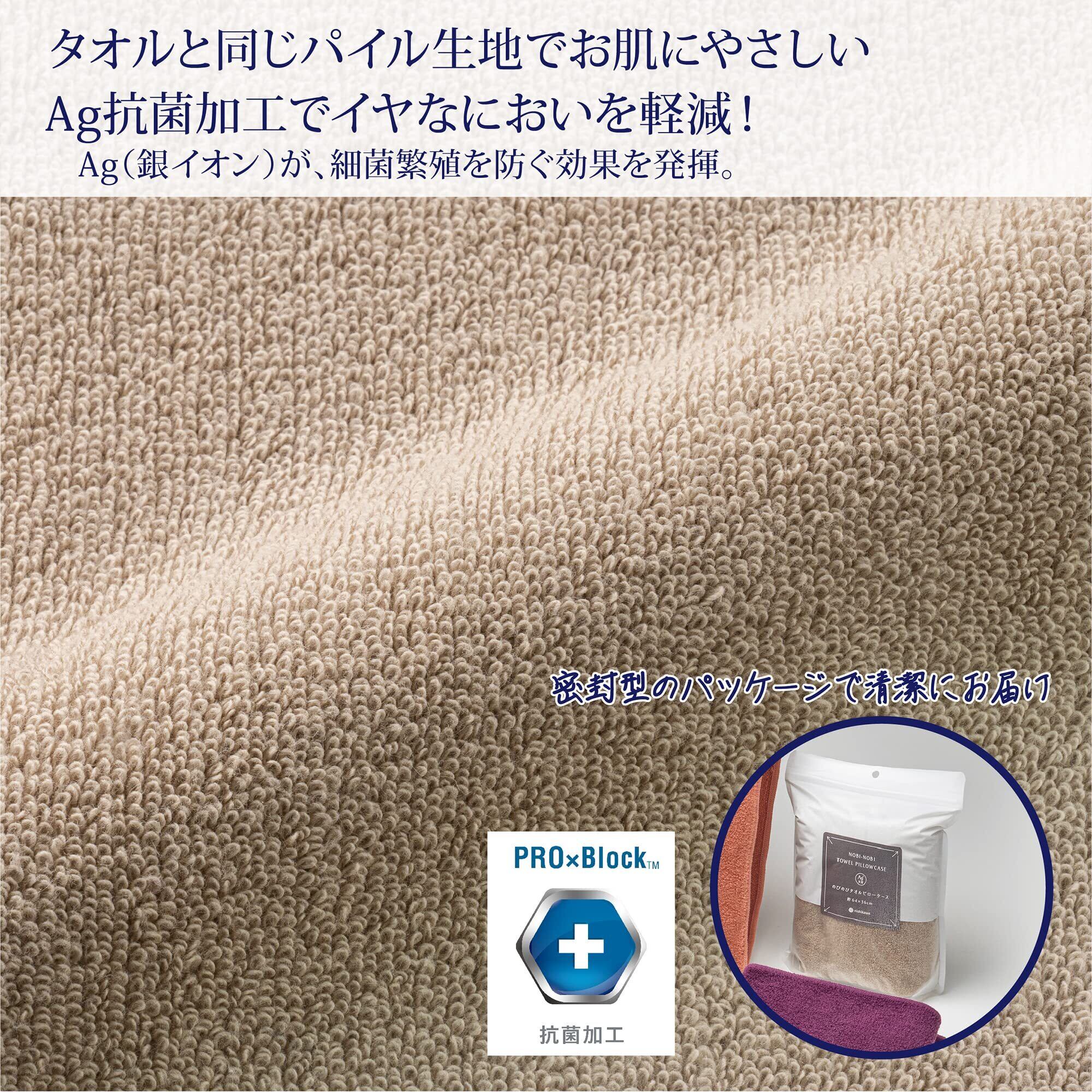 nishikawa【西川】 のびのび枕カバー Ag抗菌タイプ ベージュ 50X63cmのサイズの枕に対応 伸縮繊維なので多彩なサイズ かたちの枕にのびのびフィット やさしい肌触りのふわふわタオル パイル地 デザインが違うリバーシブルタイプ 洗える プレゼント やわらか タオル地 パイル ピローケース まくらカバー