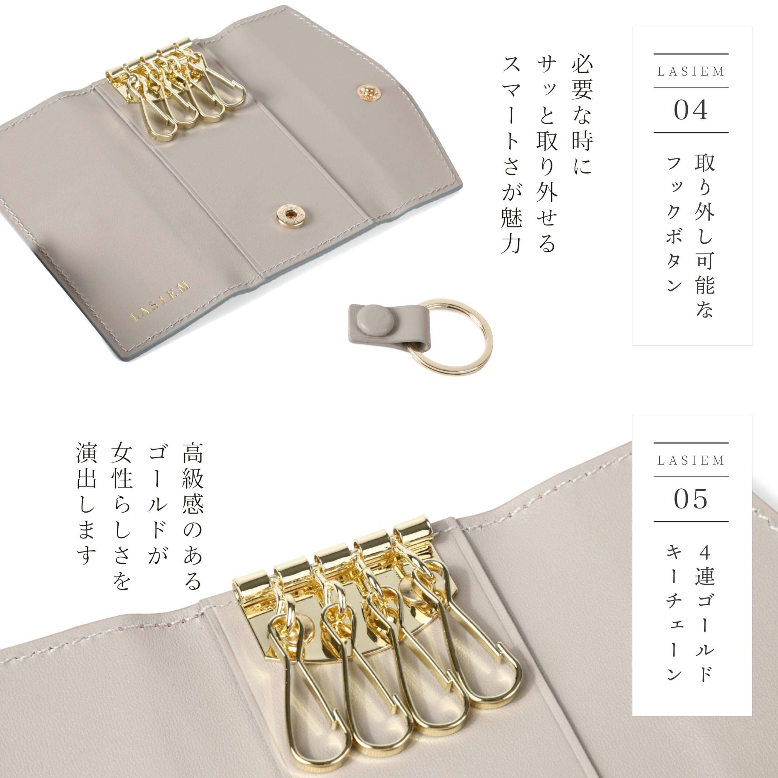 LASIEM(ラシエム) キーケース キーホルダー スマートキー対応 レディース 本革 「くすみカラー」 4連 コンパクト 鍵ケース
