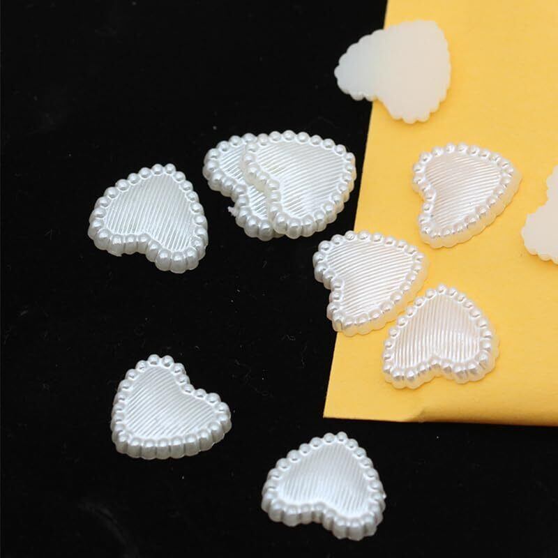 LIKENNY ネイルパーツ ぷっくり ハート型 3D 立体 ハート ボン レジン用 ネイルアート 半円パール ホワイト 手作りネイル装飾 ジュエリーパーツ 約460個セット デコパーツ