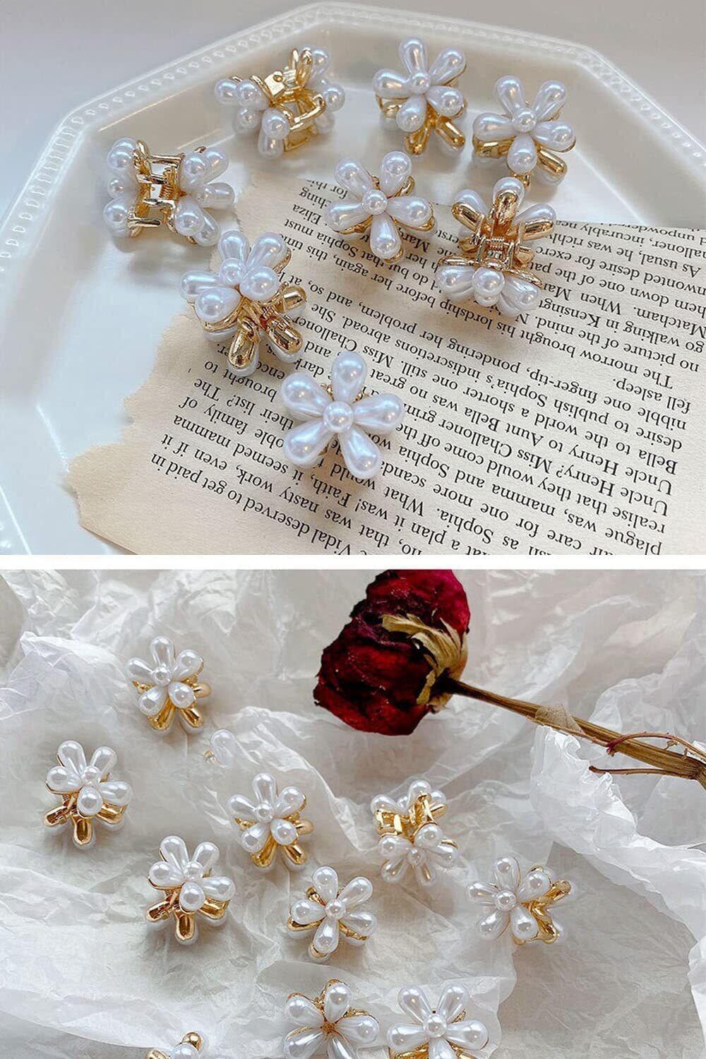LIKENNY ミニヘアクリップ ヘアピン 花 前髪クリップ 真珠のヘアクリップ ヘアアクセサリー 可愛い 髪飾り バンスクリップ 髪留め 子供 誕生日 卒業式 入学式 結婚式 10個入り