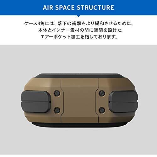 アウトドアシーンにもマッチしたミリタリーテイストで仕上げております。落下衝撃を想定して、コーナー4角のTPUに厚みをもたせ、より衝撃を緩和します。