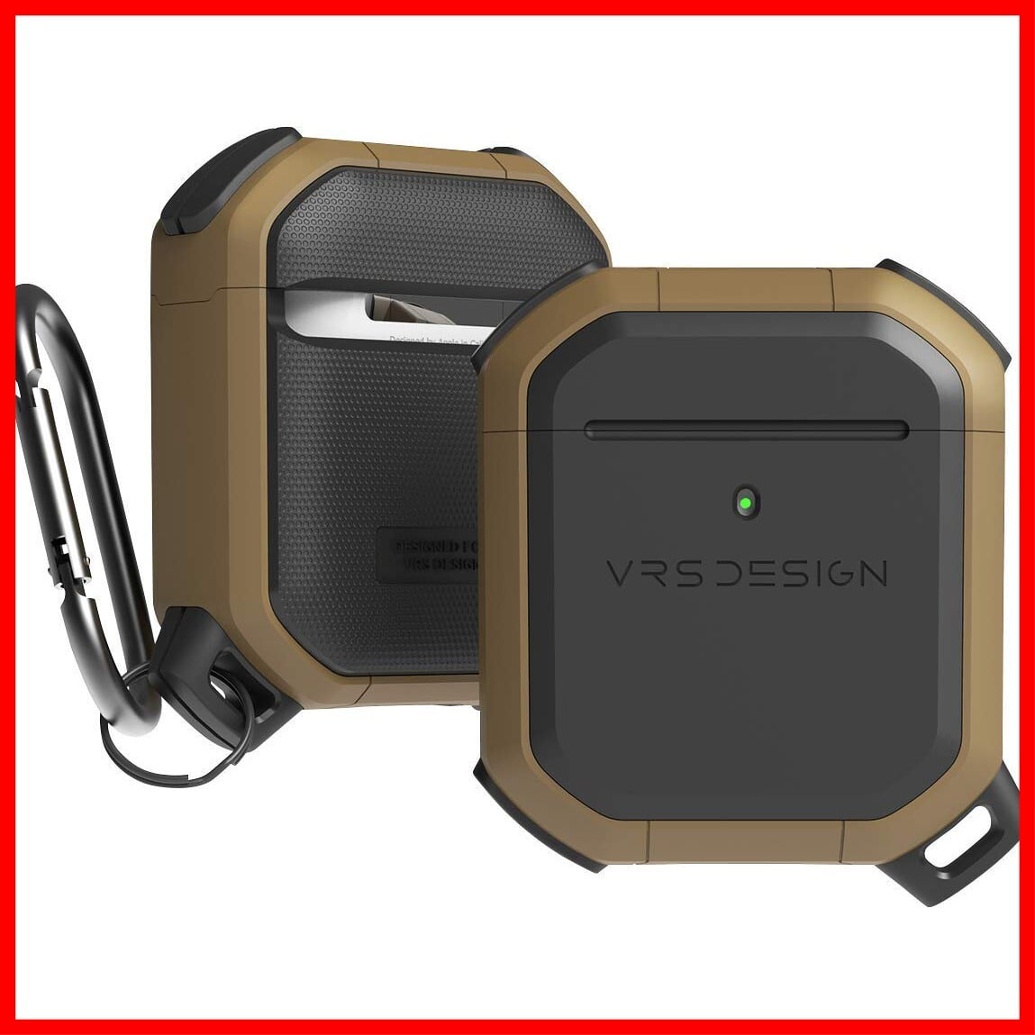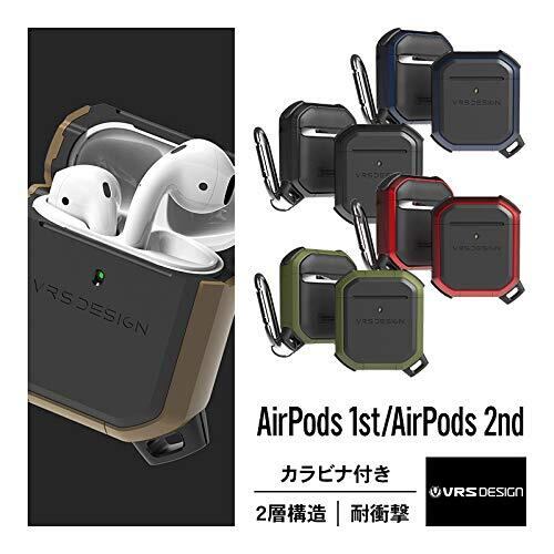 【VRS】 AirPods 対応 ケース 耐衝撃 カラビナ 付 収納ケース 2層構造 ハイブリッド 衝撃 吸収 ハード カバー 傷防止 落下防止 保護 ケースカバー アクセサリー [ Apple AirPods1 / AirPods2 Wireless Charging Case エアーポッズ 対応 ] ACTIVE サハラカーキ