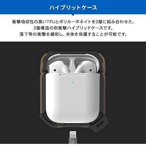 【VRS】 AirPods 対応 ケース 耐衝撃 カラビナ 付 収納ケース 2層構造 ハイブリッド 衝撃 吸収 ハード カバー 傷防止 落下防止 保護 ケースカバー アクセサリー [ Apple AirPods1 / AirPods2 Wireless Charging Case エアーポッズ 対応 ] ACTIVE サハラカーキ | hananoki