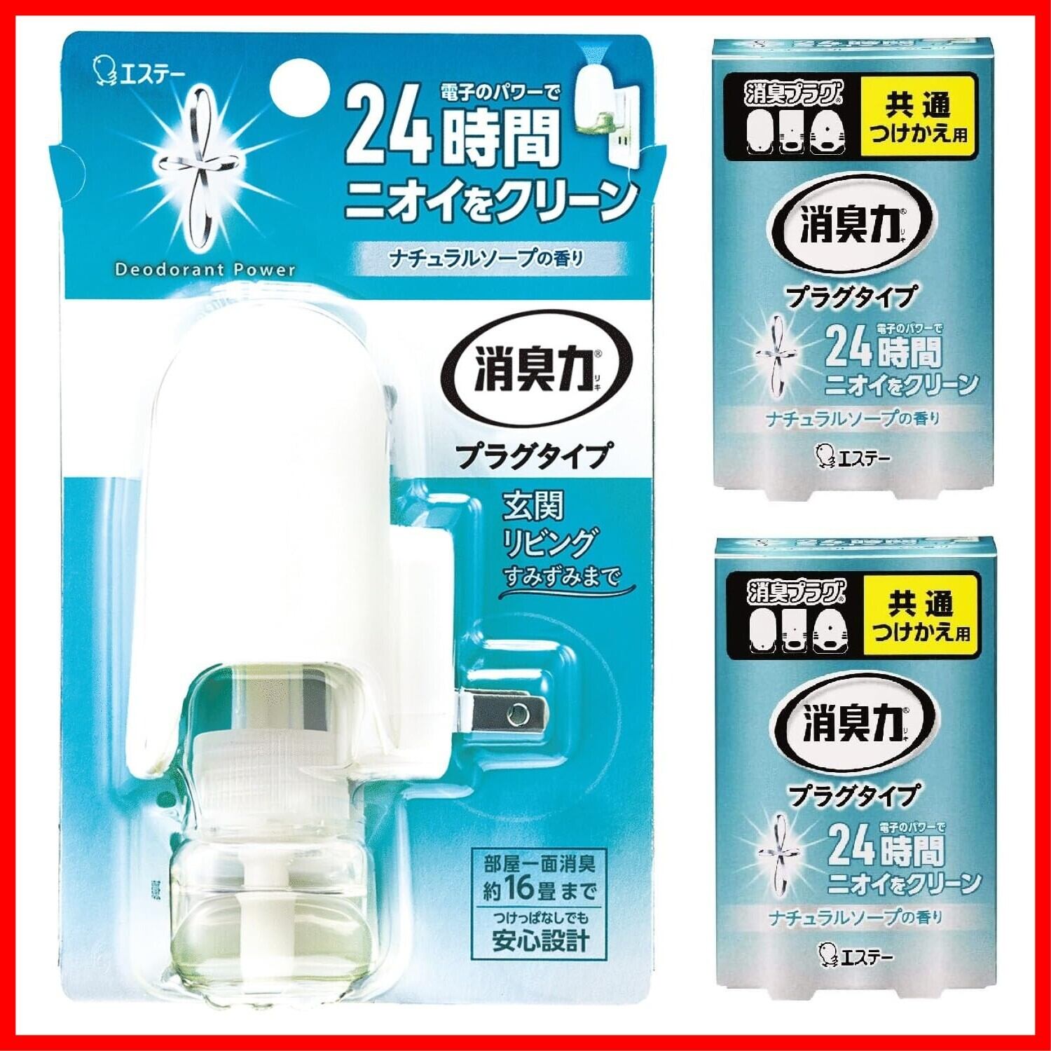 消臭力 [まとめ買い] プラグタイプ 部屋用 トイレ用 ナチュラルソープ 本体+つけかえ2個 60mL 部屋 玄関 リビング トイレ 消臭剤 消臭 芳香剤
