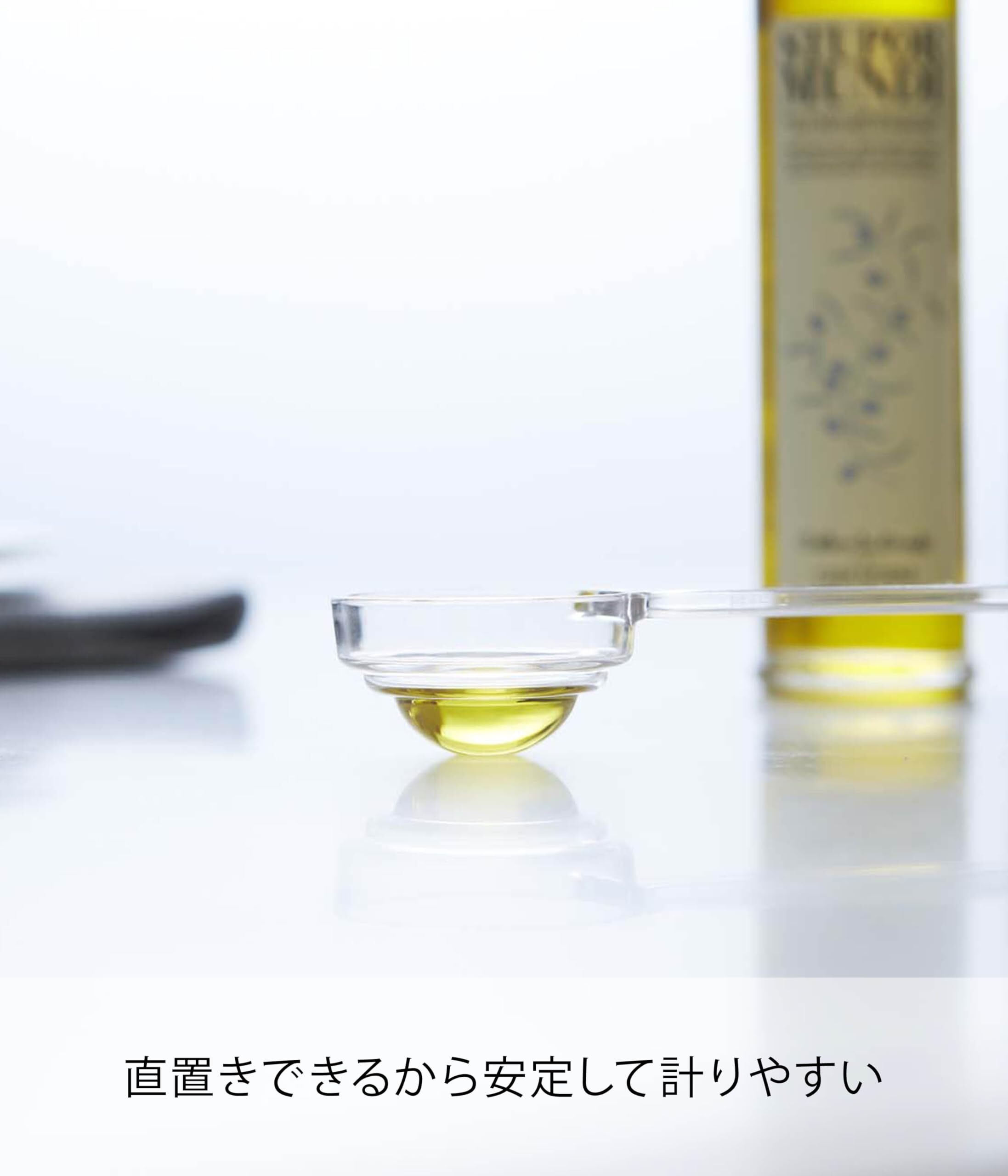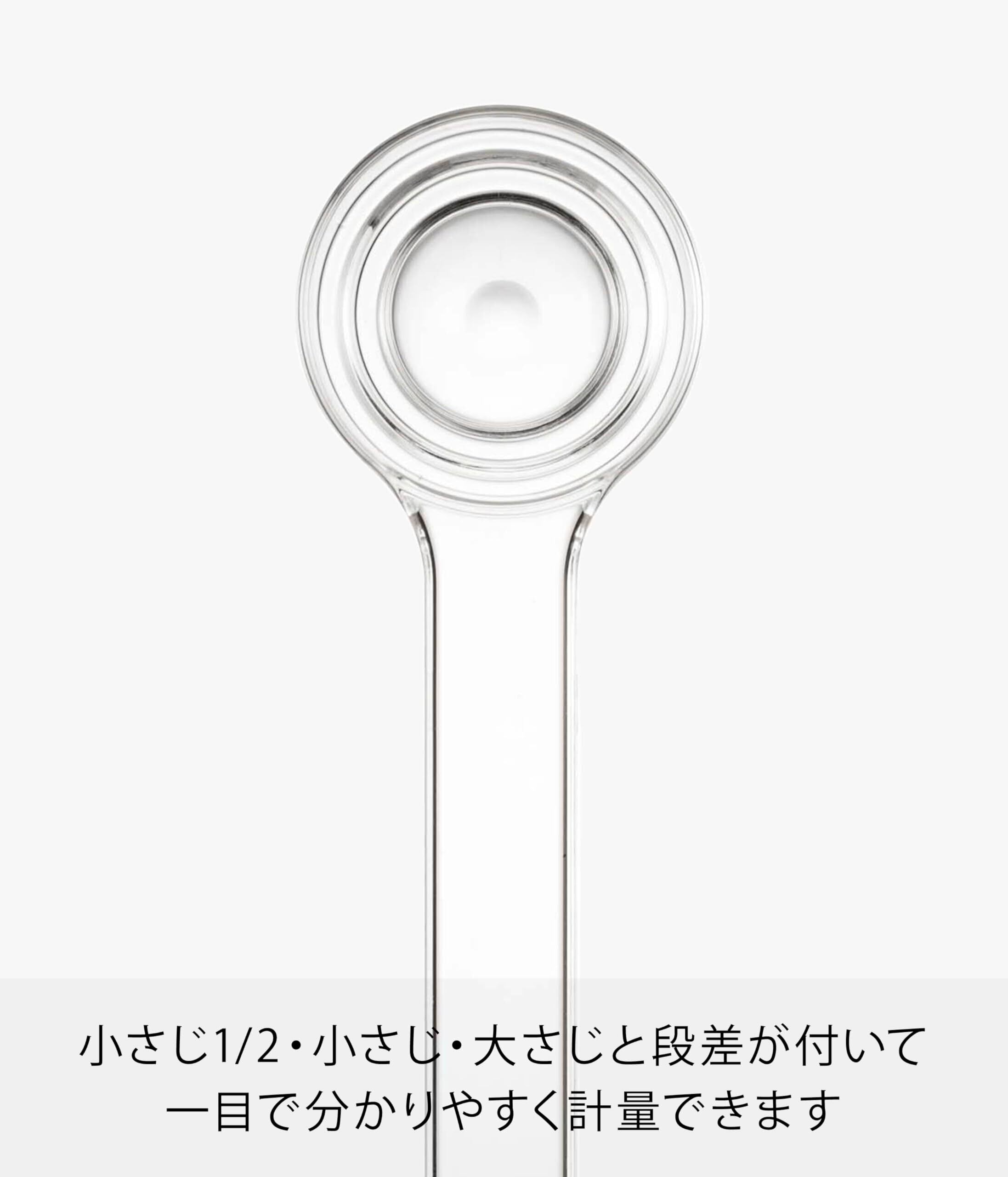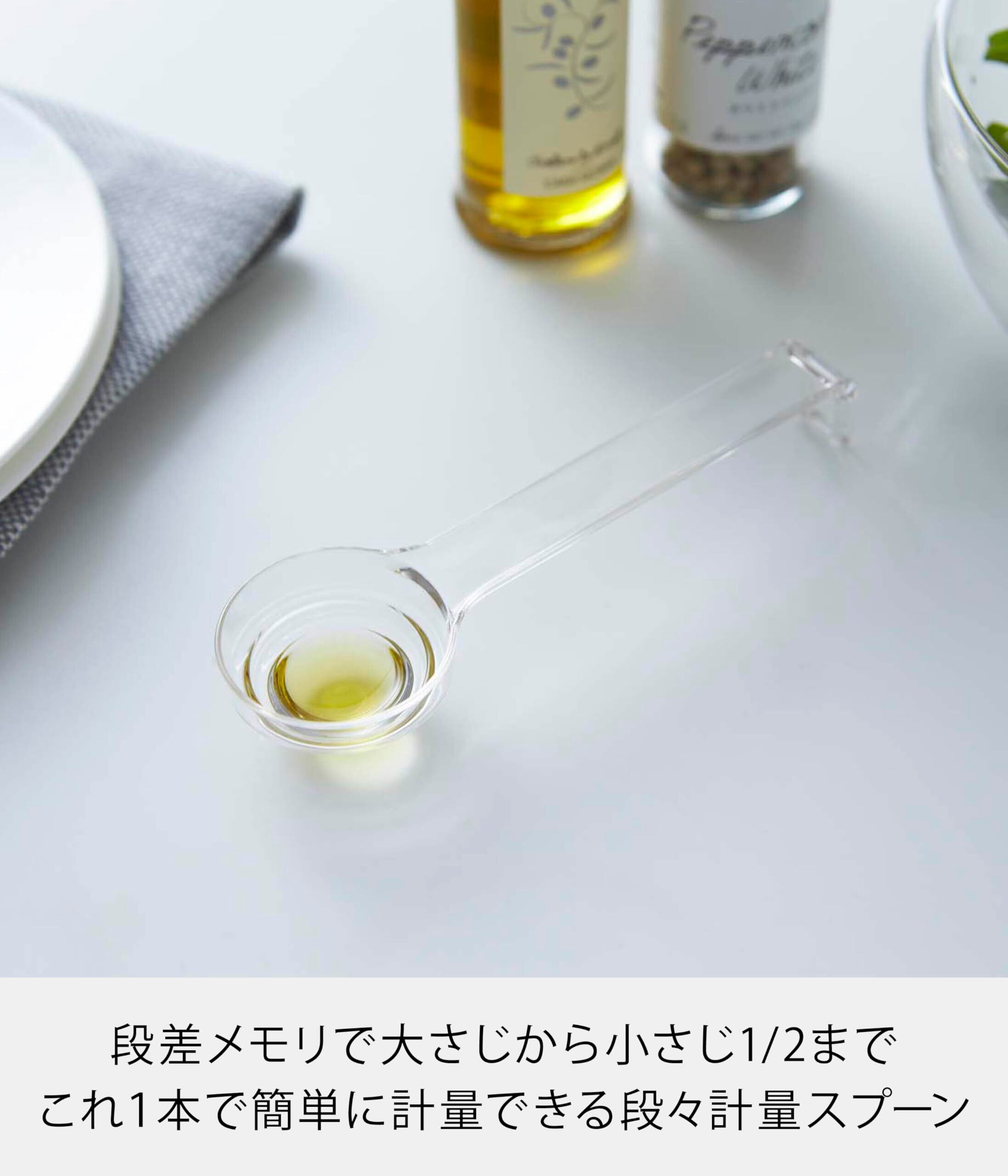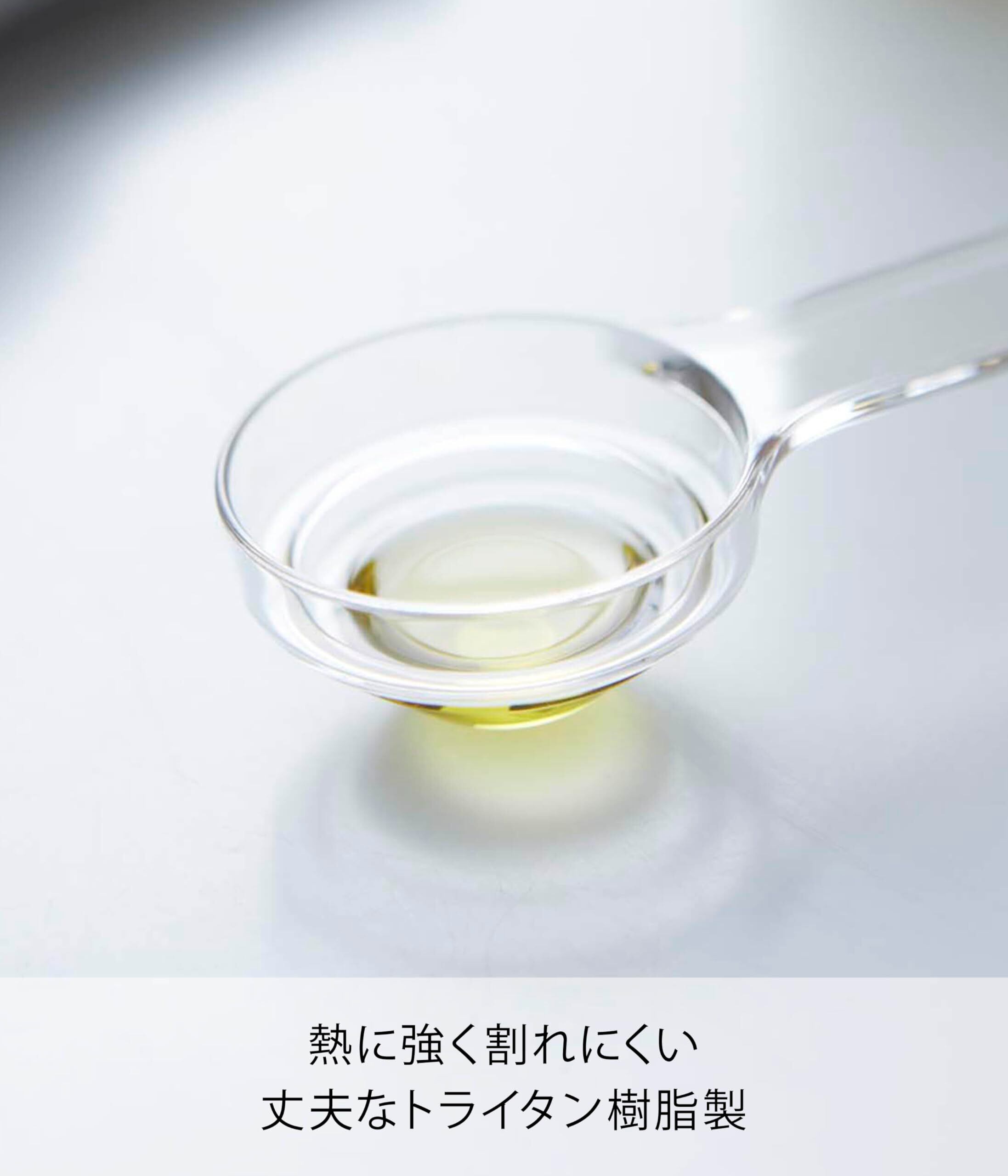 ●段差メモリで大さじ・小さじ・小さじ1/2がこれ1本で簡単計量。熱に強く割れにくいトライタン樹脂製