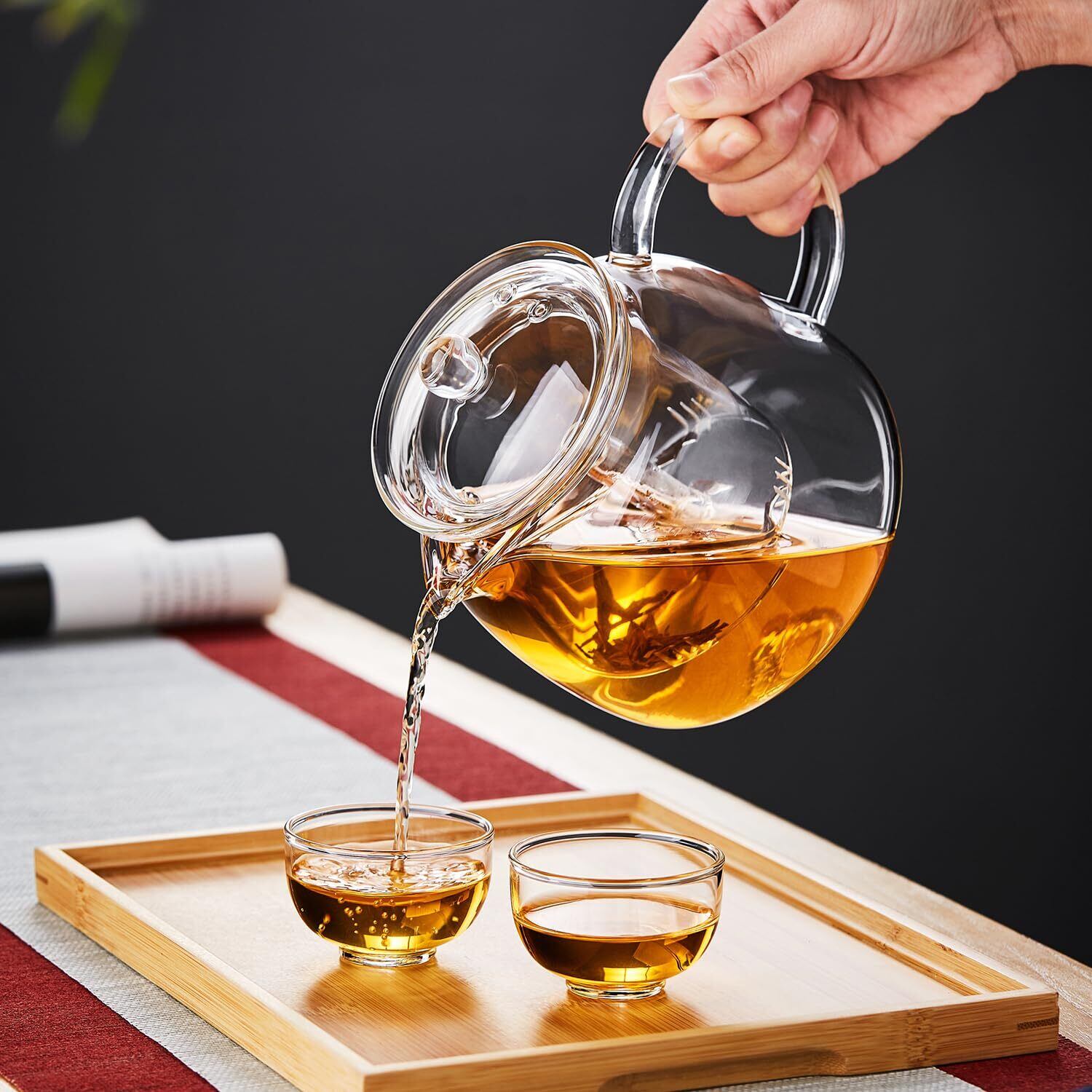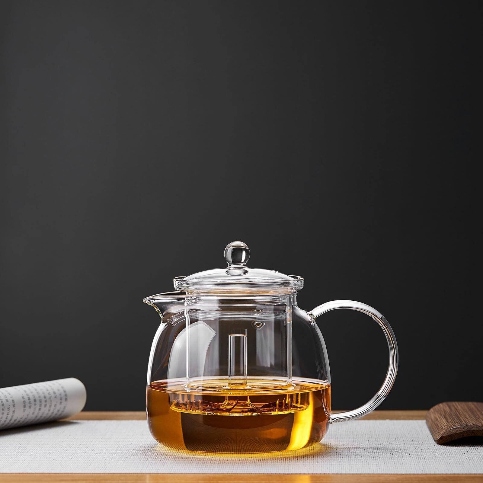 材質は耐熱高硼酸ガラスなので、瞬間的な温度変化に耐えられて、温度範囲は-20℃から150℃までです、熱膨張係数3.3、他のガラスよりも熱衝撃に耐性があります。高強度、高硬度、高光透過率を持っています。厚さは約4.06mmと強度が高いので安心、割れにくい。そのため、どんなシーンでも使える丈夫で美しいティーポットです。