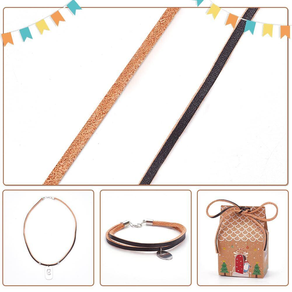 PH PandaHall 1巻き 約2m/巻き 紐 レザーコード 幅3mm ひも 平コード レザー ストラップ 素材 皮ひも 革ロープ ベルト・バッグ・ネックレッス・ブレスレット・スマホなど アクセサリー用紐 サドルブラウン