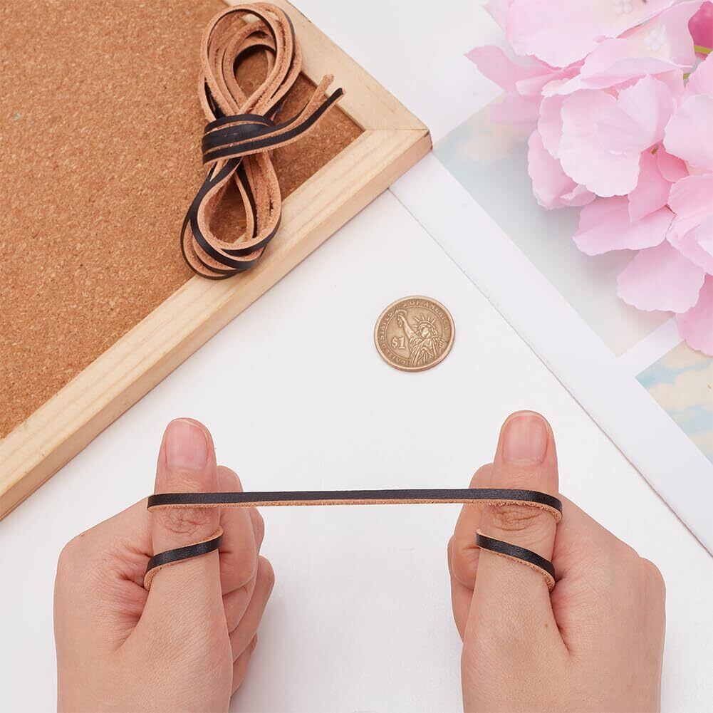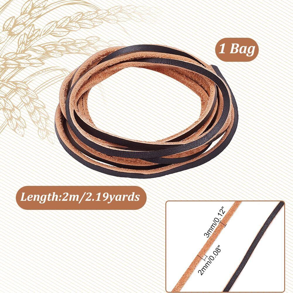 PH PandaHall 1巻き 約2m/巻き 紐 レザーコード 幅3mm 牛 牛ひも 平コード レザー ストラップ 素材 皮ひも ロープ ベルト・バッグ・ネックレッス・ブレスレット・スマホなど アクセサリー用紐 サドルブラウン