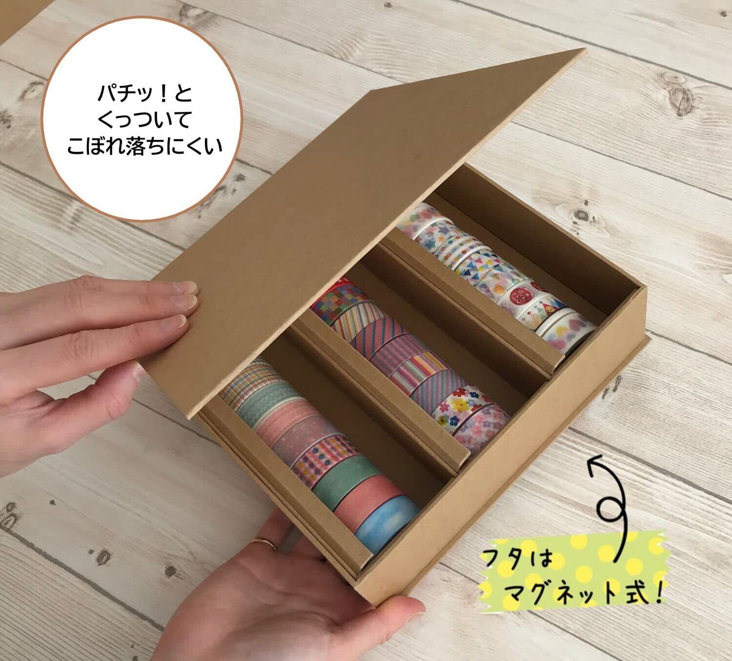 そんなお客様の声から生まれた、コレクションにピッタリ! 15mm幅が36個収納できるクラフト素材のマスキングテープケース「Mサイズ」です。
