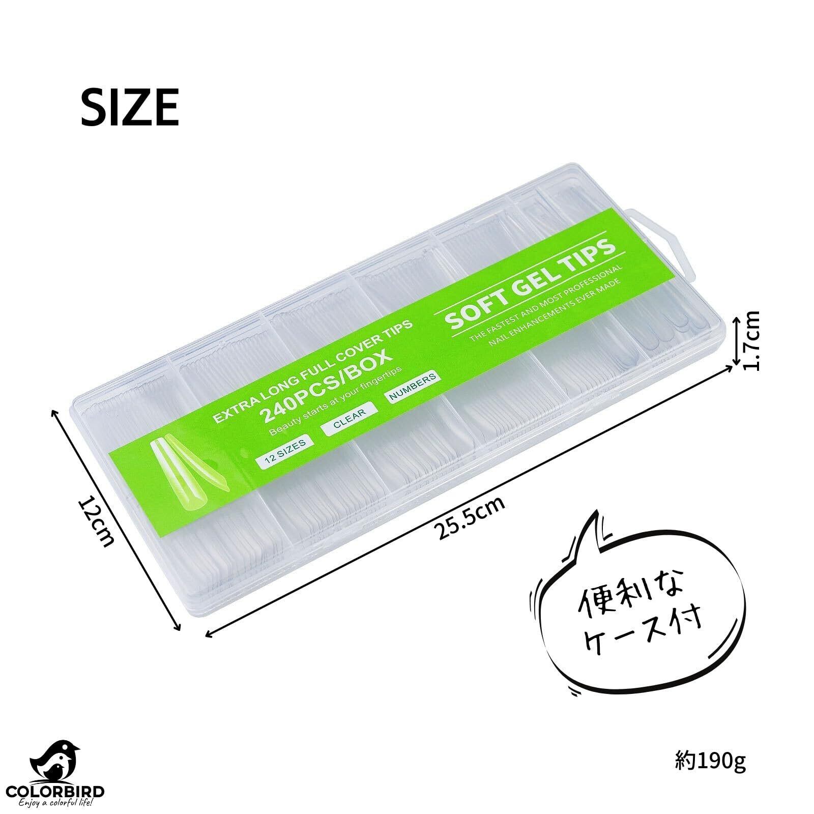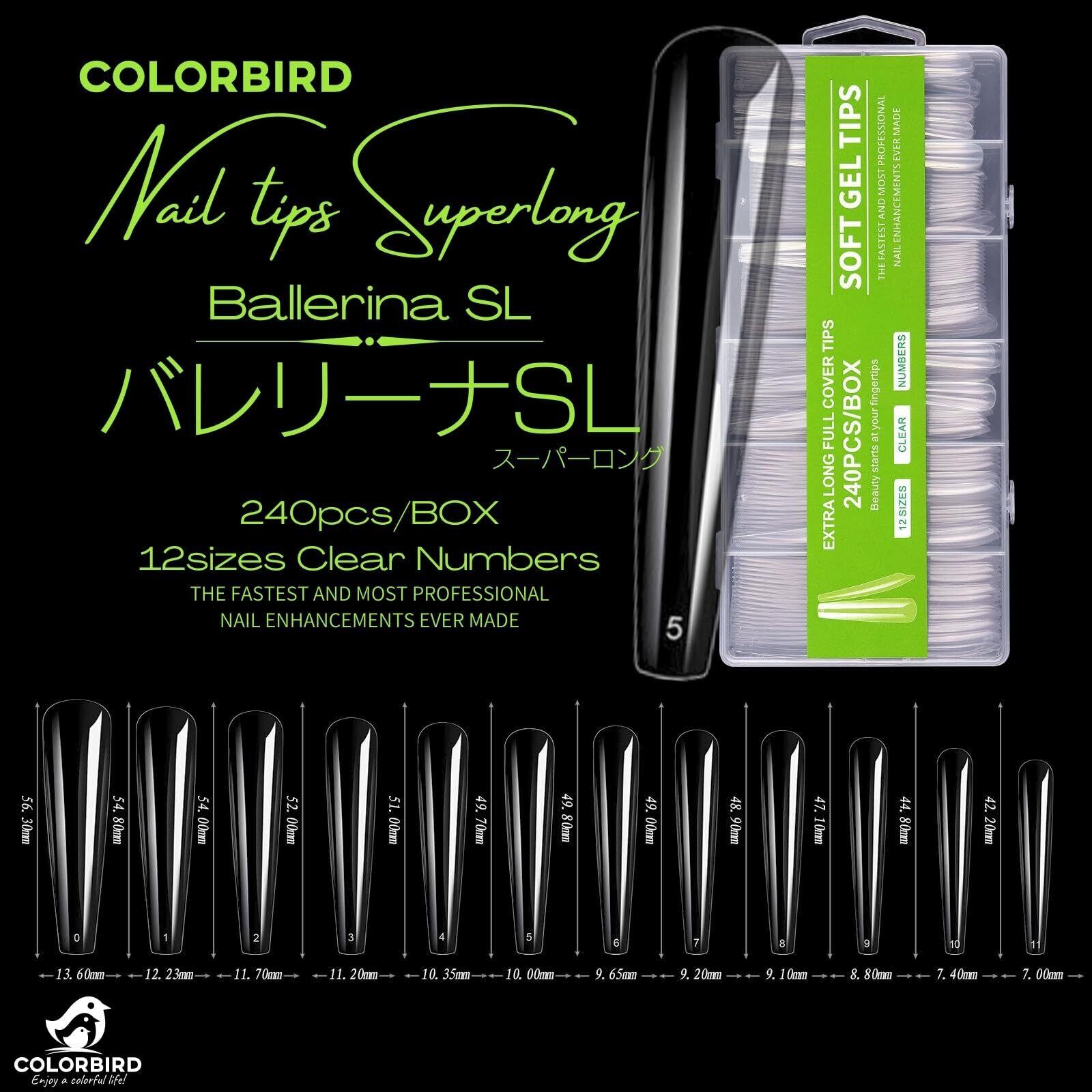 COLORBIRD ネイルチップ ロング スーパーロング 240枚 超鬼ロング クリア ギャルネイル 付け爪 (バレリーナSL)