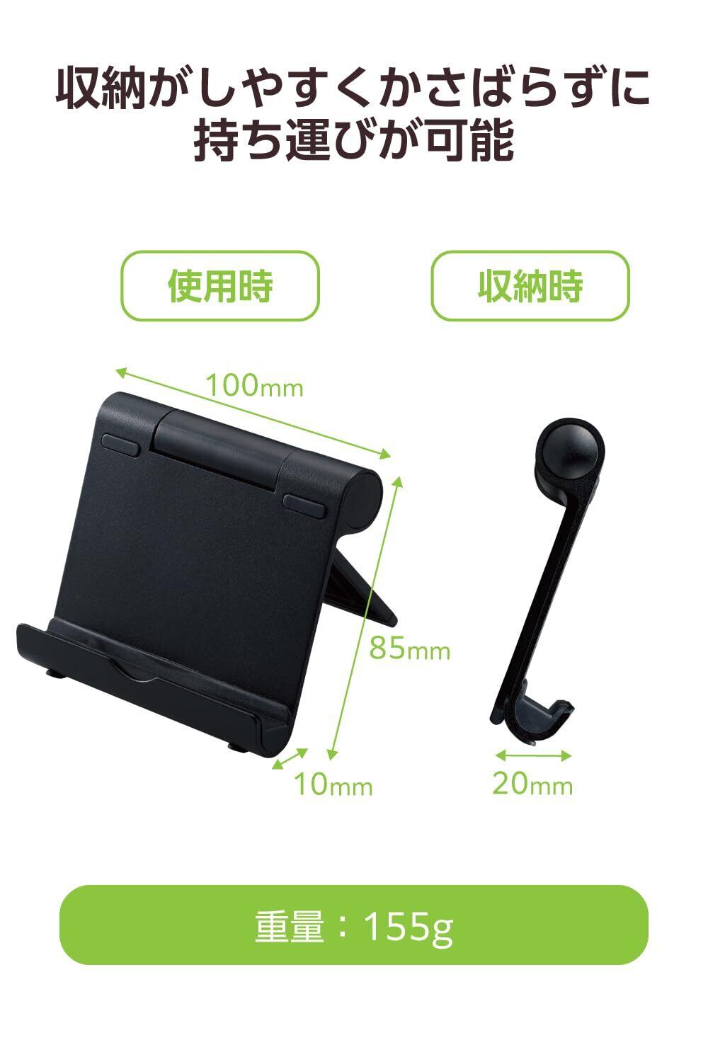 エレコム タブレット スマホ スタンド 4.6~12.9インチ対応 10段階 角度調節 角度固定 折り畳み時 厚さ約2cm 軽量 持ち運び 【 iPhone iPad Pro Air mini FireHD Huawei Galaxy GooglePixcel Switch 】 ブラック TBWDSCMPTBK
