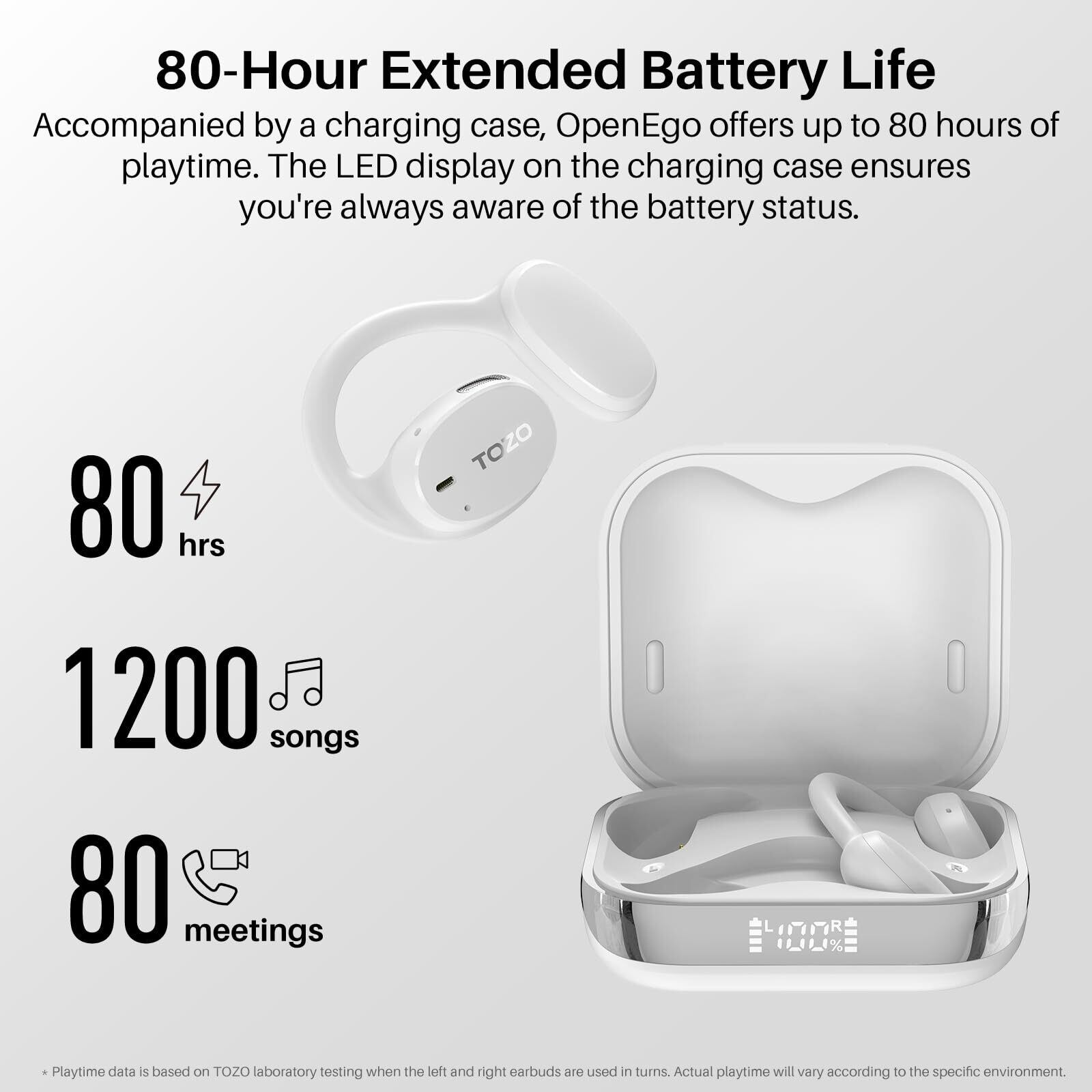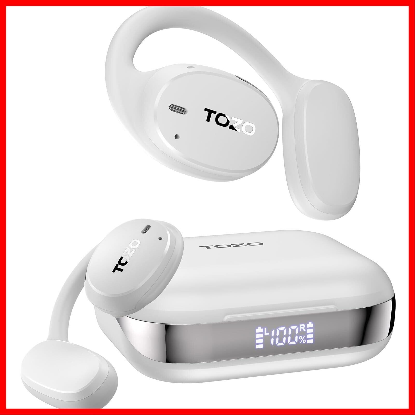 TOZO OpenEgo ワイヤレス イヤホン bluetooth 5.3 オープンイヤー 極上のフィット感 耳を塞がない LED ディスプレイ AI 通話時ノイズリダクション 約70~80h再生 IPX5防水 イヤホンワイヤレス ぶるーとゅーす イヤホン オープンイヤーヘッドホン 業界トップ音質 指向性音伝送技術 音漏れ無し 耳掛け式 (ホワイト)