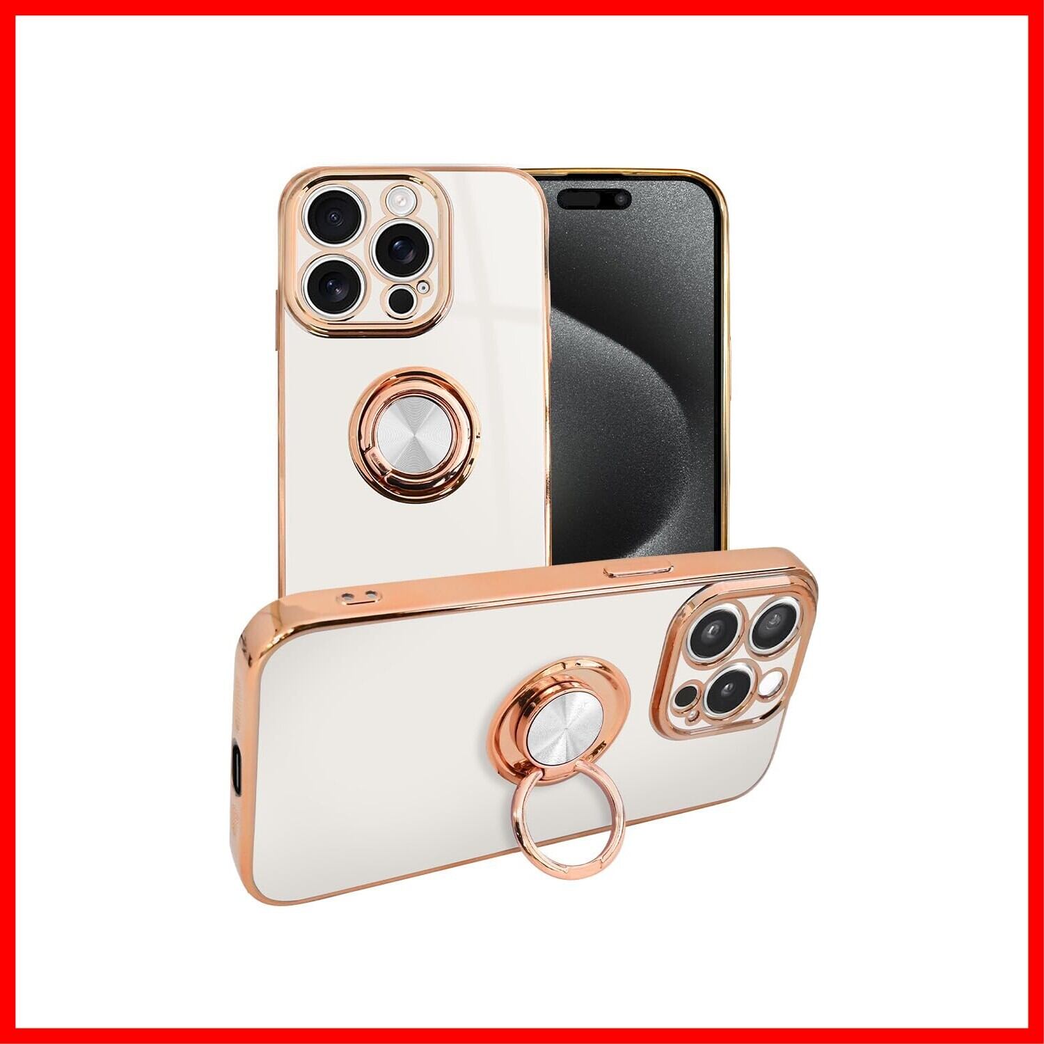 シズカウィル iPhone 15 Pro 用 スマホケース スマホリング グリッティア リング付きケース 1個入り パールホワイト