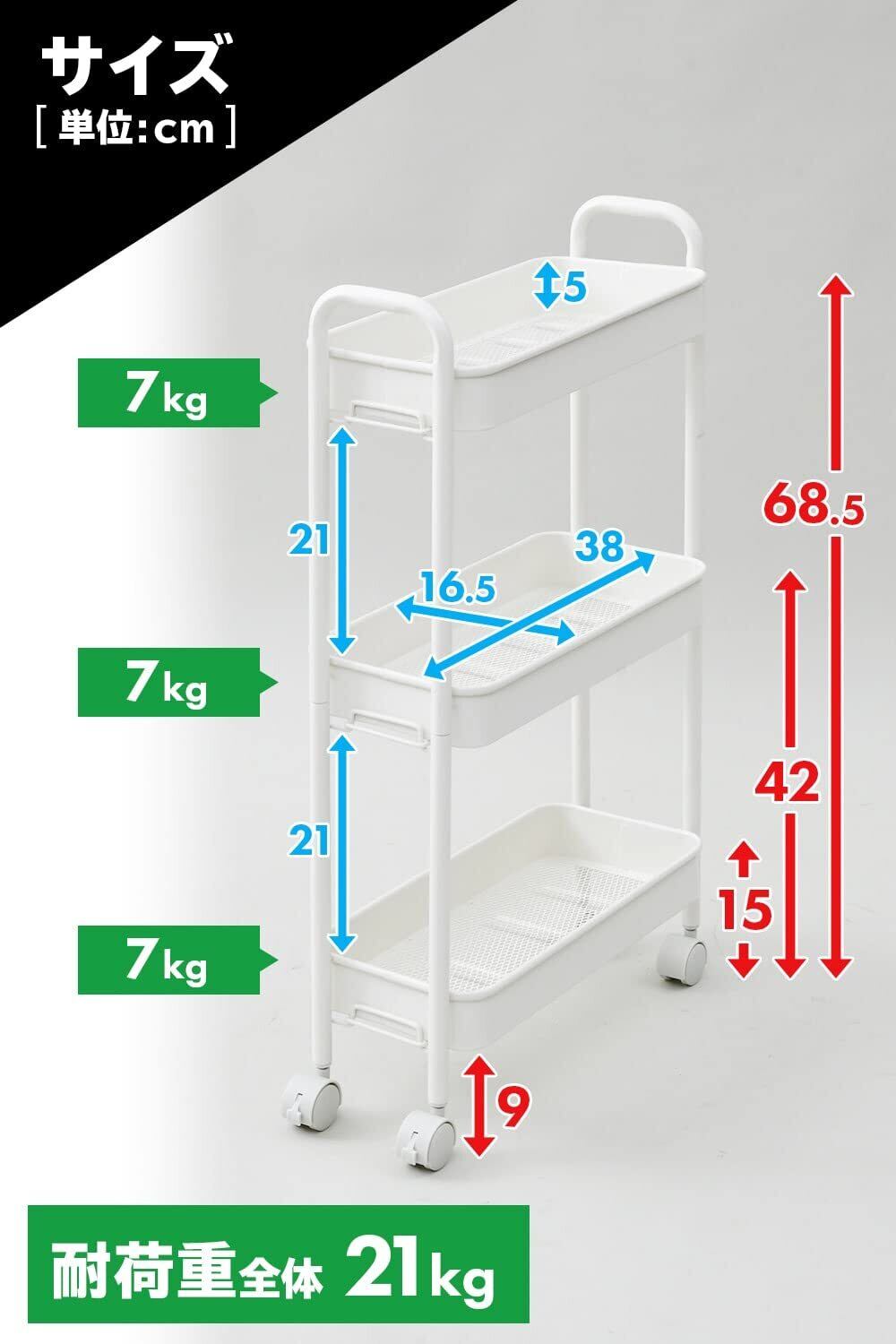 全体耐荷重:21kg(1段あたり7kg)