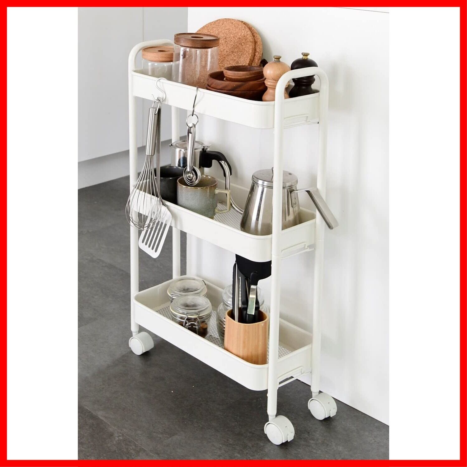 山善(YAMAZEN) キッチンワゴン (スリム) キャスター付き 3段 幅43.5×奥行18.5×高さ74.5cm ワゴン 組立かんたん ホワイトLBW-3S(MWH)