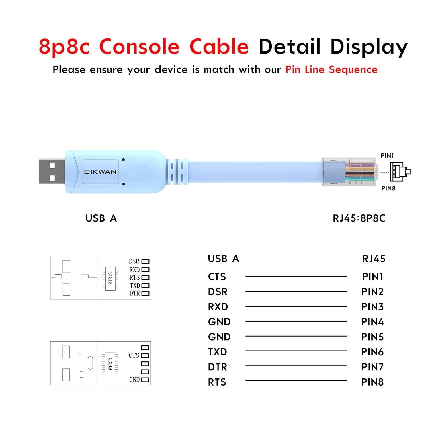 OIKWAN(オイクウァン) コンソールケーブル USBコンソールケーブル USBからRJ45コンソールケーブル FTDIチップ付き Cisco/Huawei/HP/Arista/Opengear/Aruba/Juniperのルーター/スイッチに対応 Windows/Mac/Linuxのノートパソコン用 | hananoki