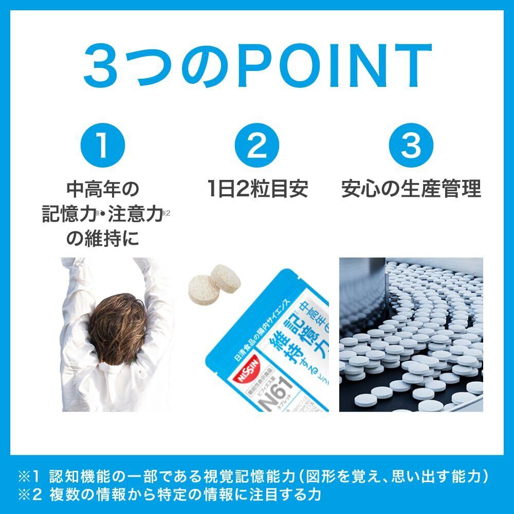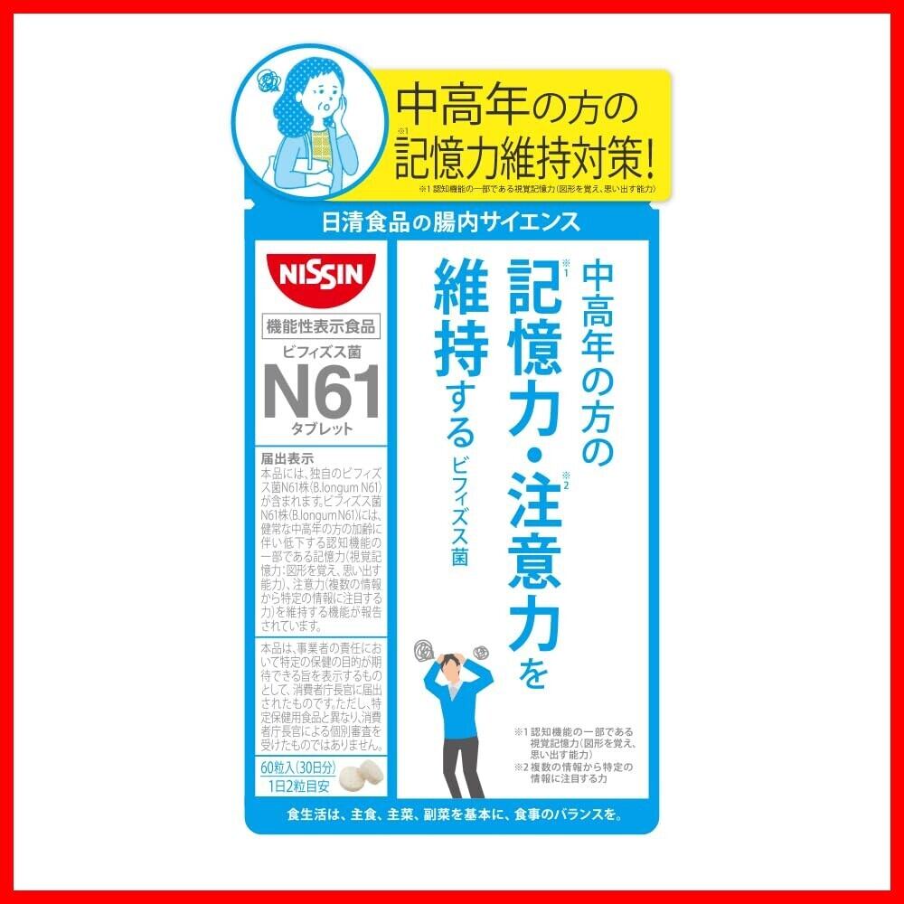 【 日清食品 】 腸内サイエンス ビフィズス菌 N61 乳酸菌 [ 機能性表示食品 ] 記憶力 注意力 サプリメント 1日2粒目安 30日分 1袋