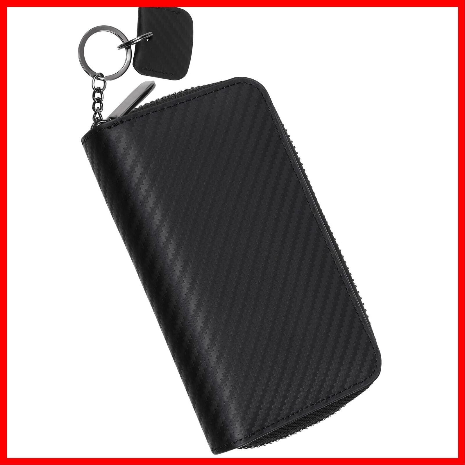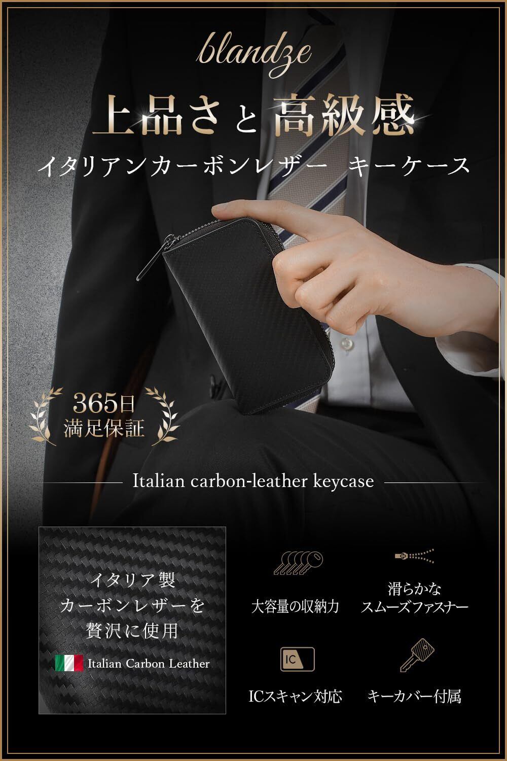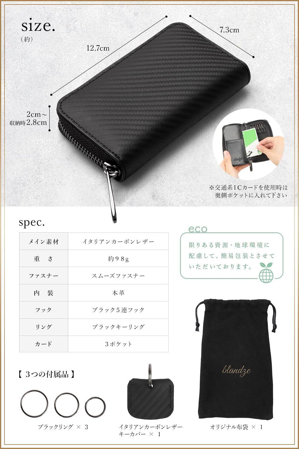 [ブランゼ] キーケース メンズ イタリアン カーボンレザー ラウンドファスナー スマートキー対応 キーカバー1個付属