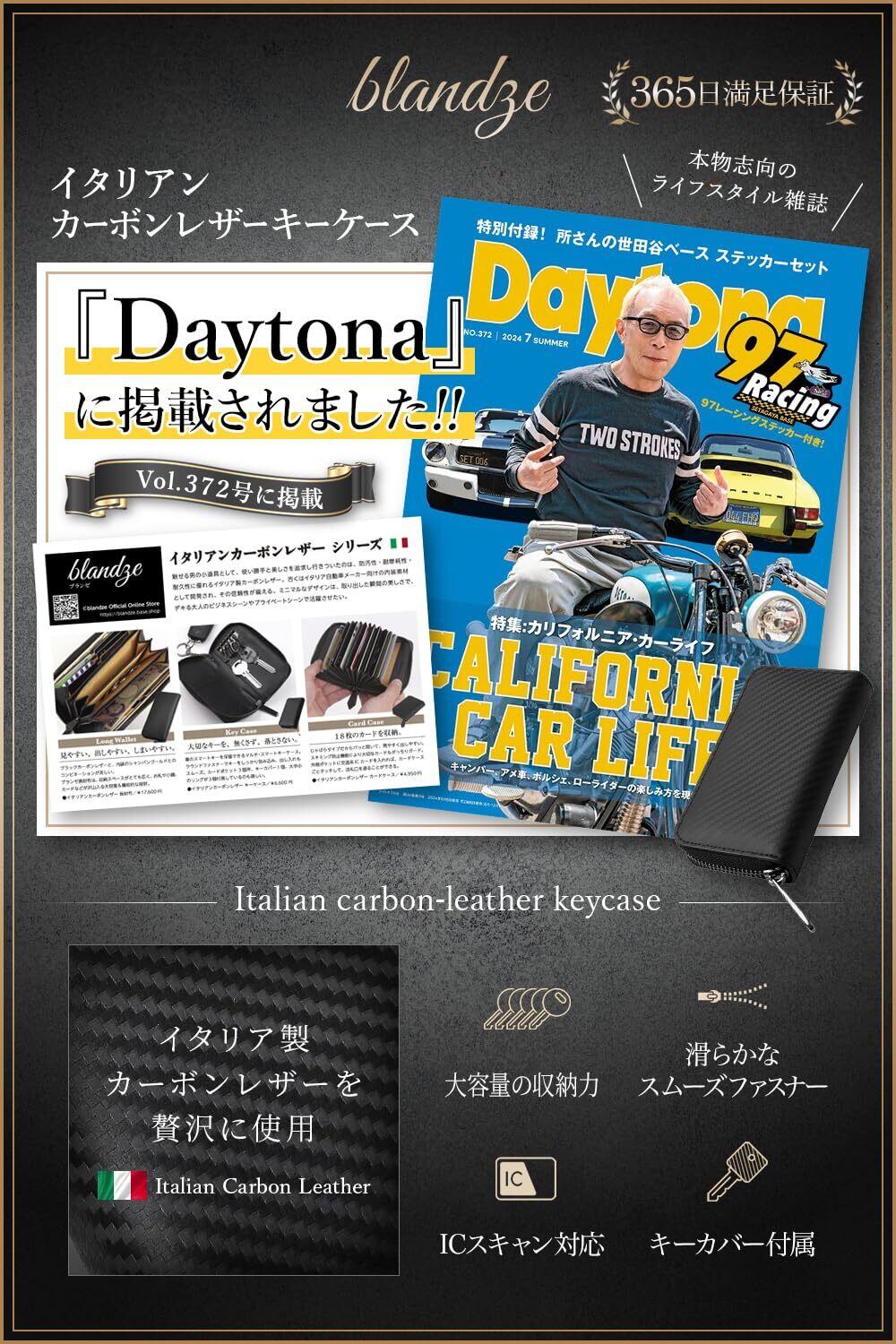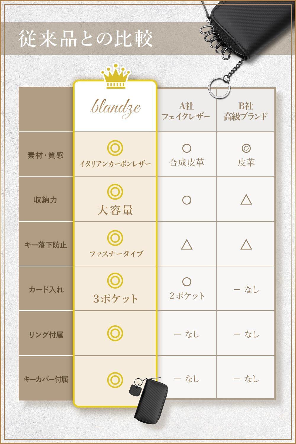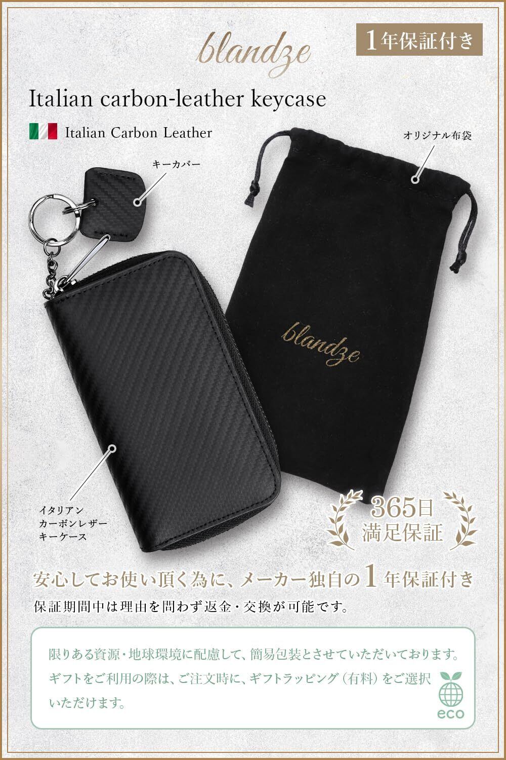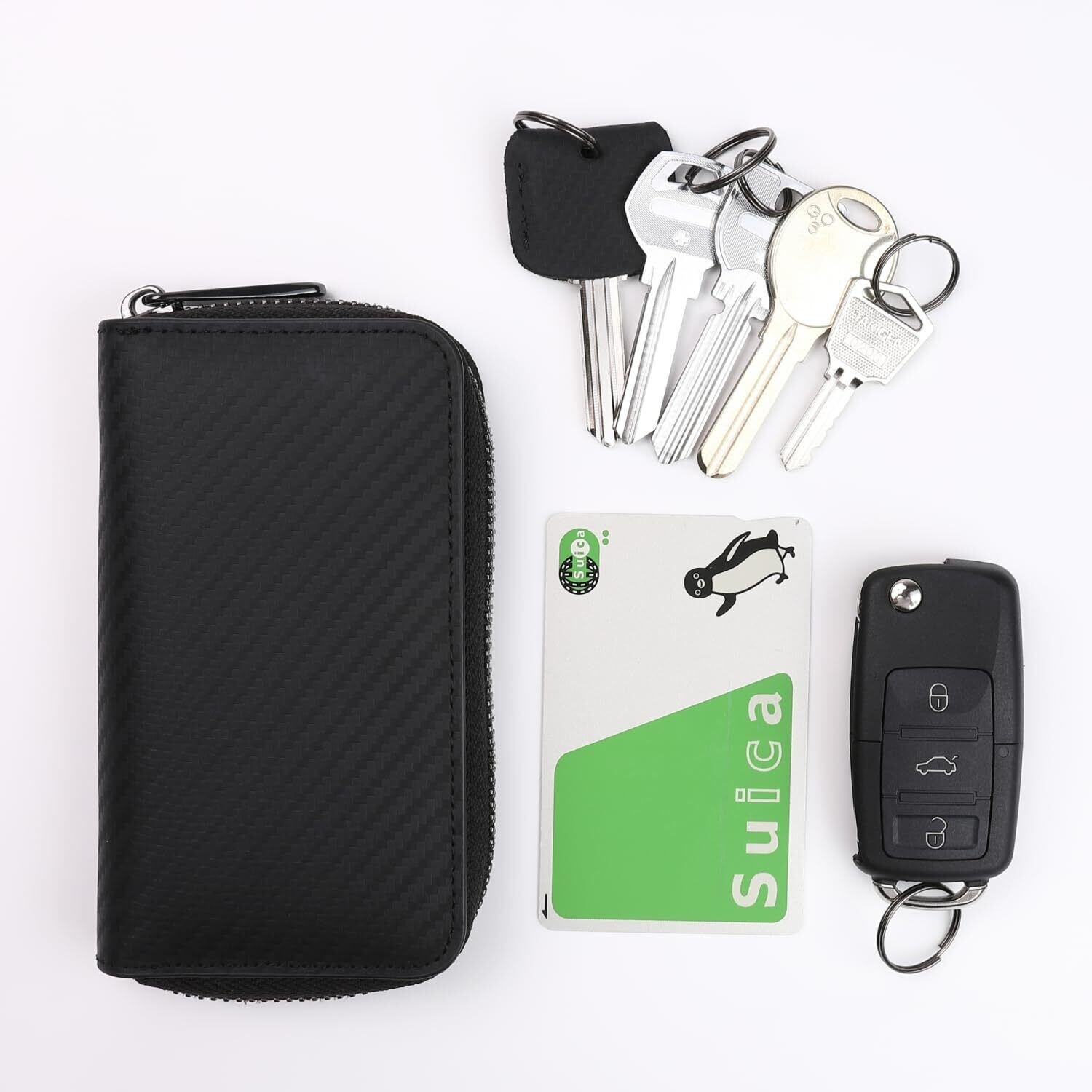 [ブランゼ] キーケース メンズ イタリアン カーボンレザー ラウンドファスナー スマートキー対応 キーカバー1個付属