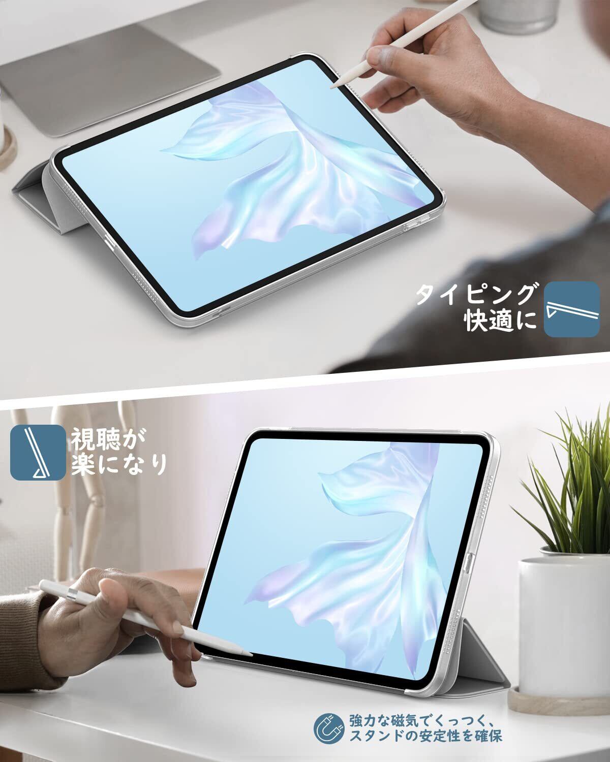 iPad 第11世代 A16 / 第10世代 ケース 2025/2022 Dadanism iPad 11世代 11インチ ケース 2025年新モデル iPad 10世代 10.9インチ ケース 2022 第10世代 iPad 11 10 カバー アイパッド用 スタンドケース オートスリープ機能 軽量 薄型 PU+TPU 耐久性 Apple Pencilに対応 透明バック カバー シルバーグレー