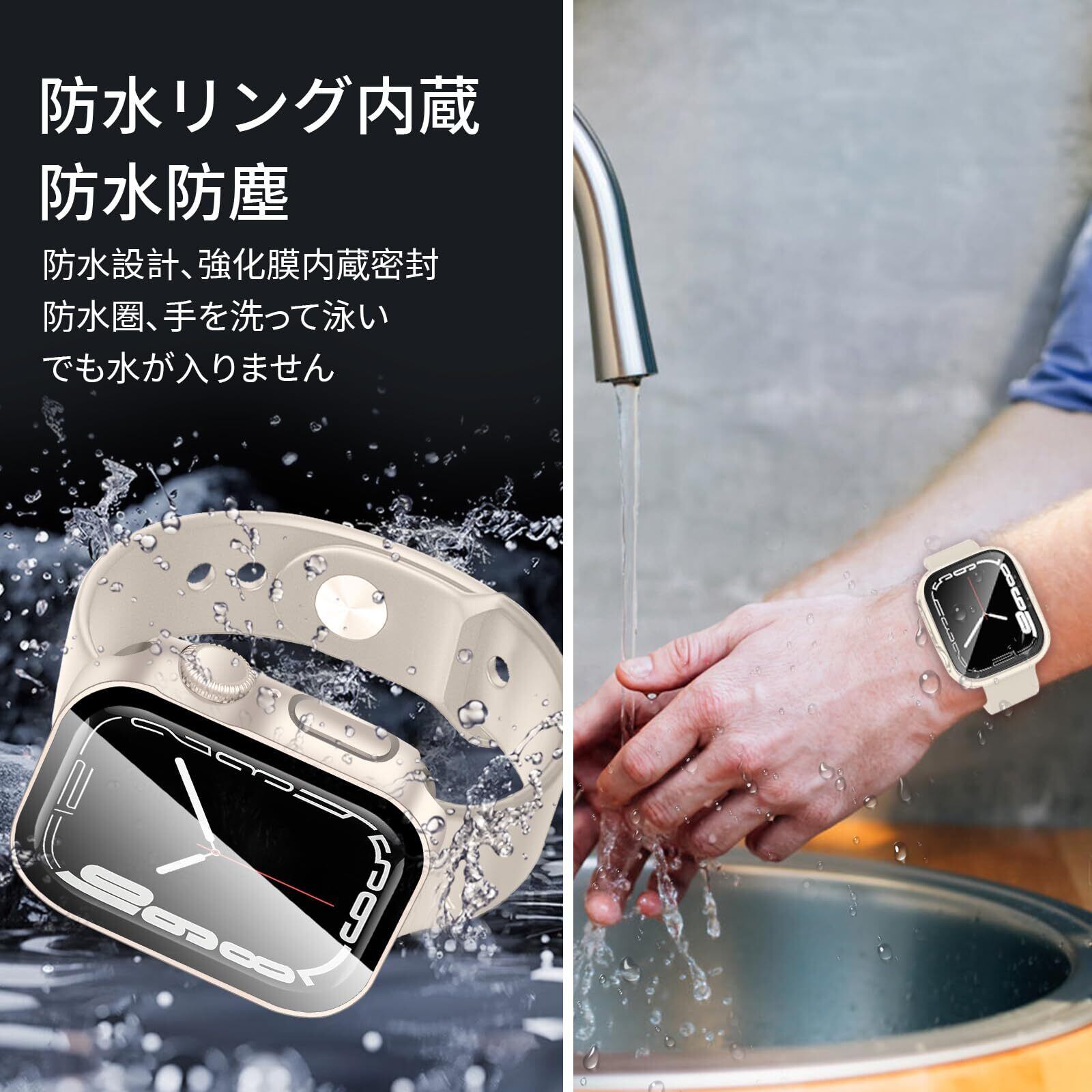 【防水】Apple Watchのケース内部には特殊加工が施されており、内蔵のシールが画面の浸水を防ぎ、ケースを何度も取り外して水拭きする必要がありません。(注意:潜水のような深層水耐性には適用されません)。