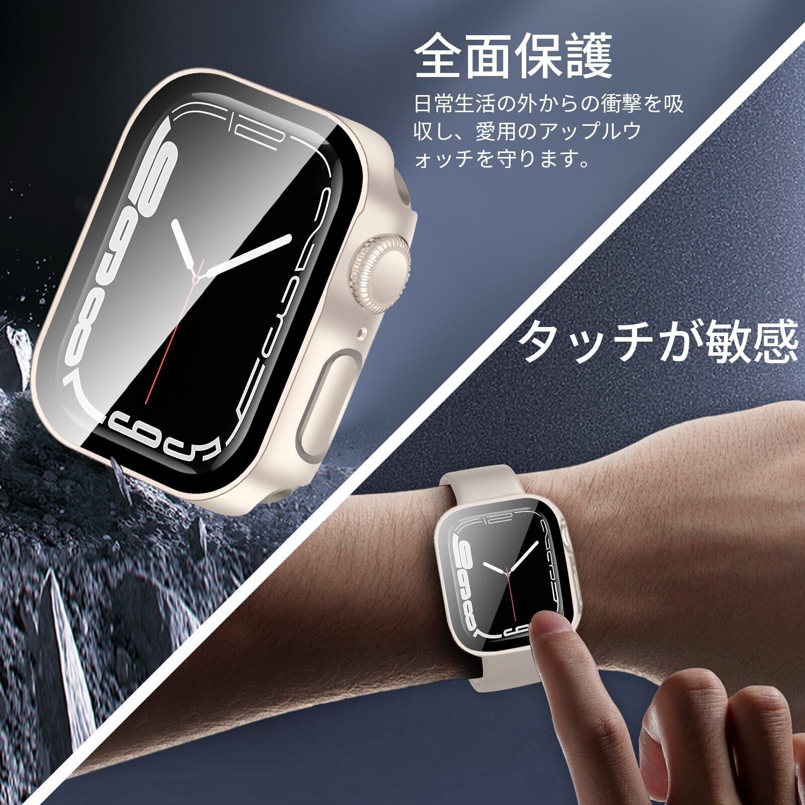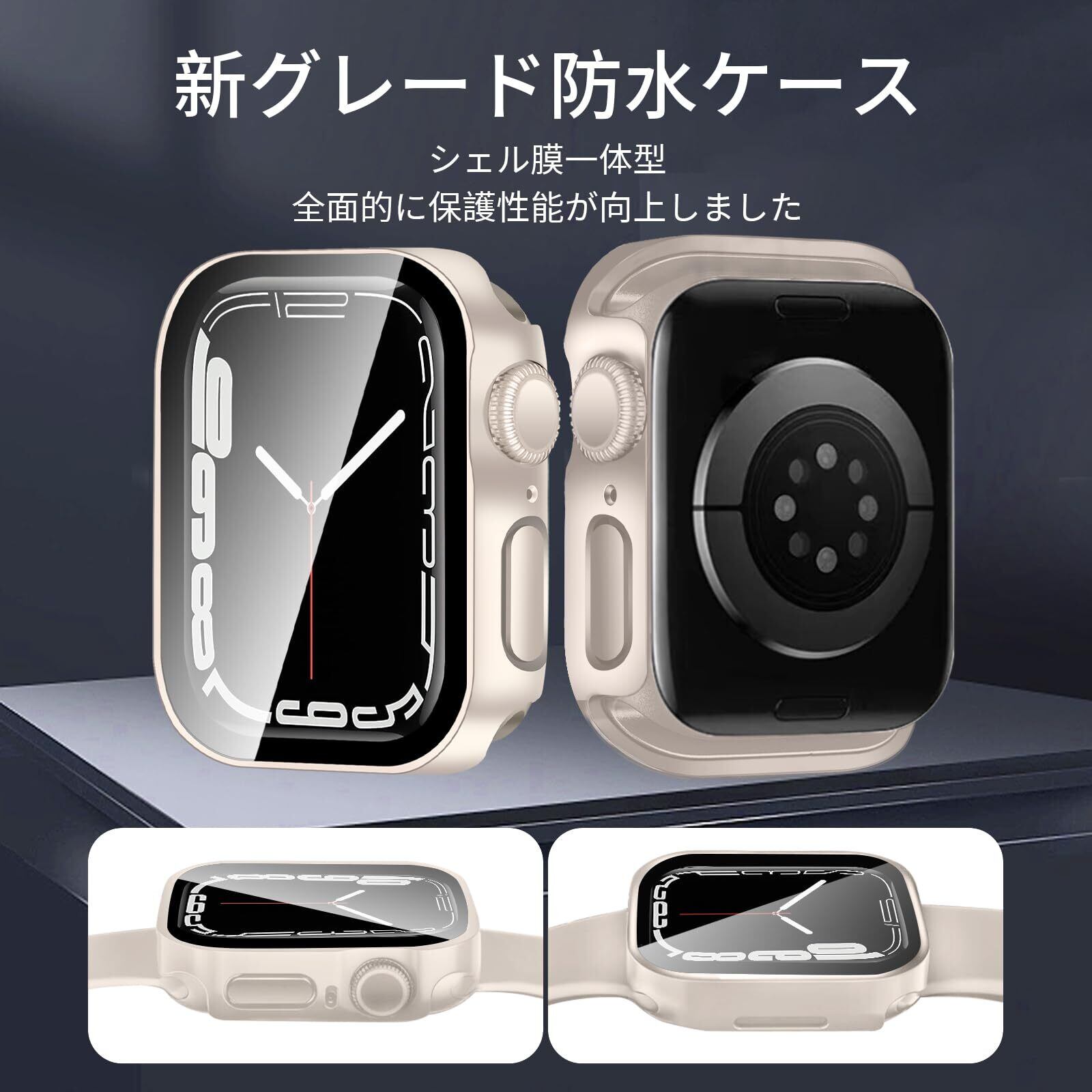 HELOGE for Apple Watch ケース Series 9/8/7 45mm アップルウォッチ カバー 49mm 45mm 44mm 41mm 40mm 対応 Apple Watch 防水ケース 一体型360ど度 IP68完全防水 3D直角エッジデザ カバー 日本旭硝子材 水泳・スポーツ専用 耐衝撃 アップルウォッチ ケース 全面保護 高透過率(45mm,starlight) | hananoki
