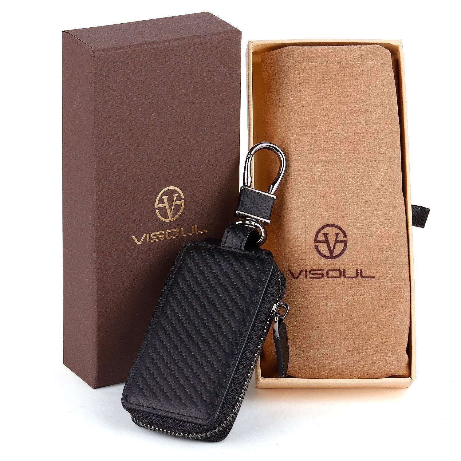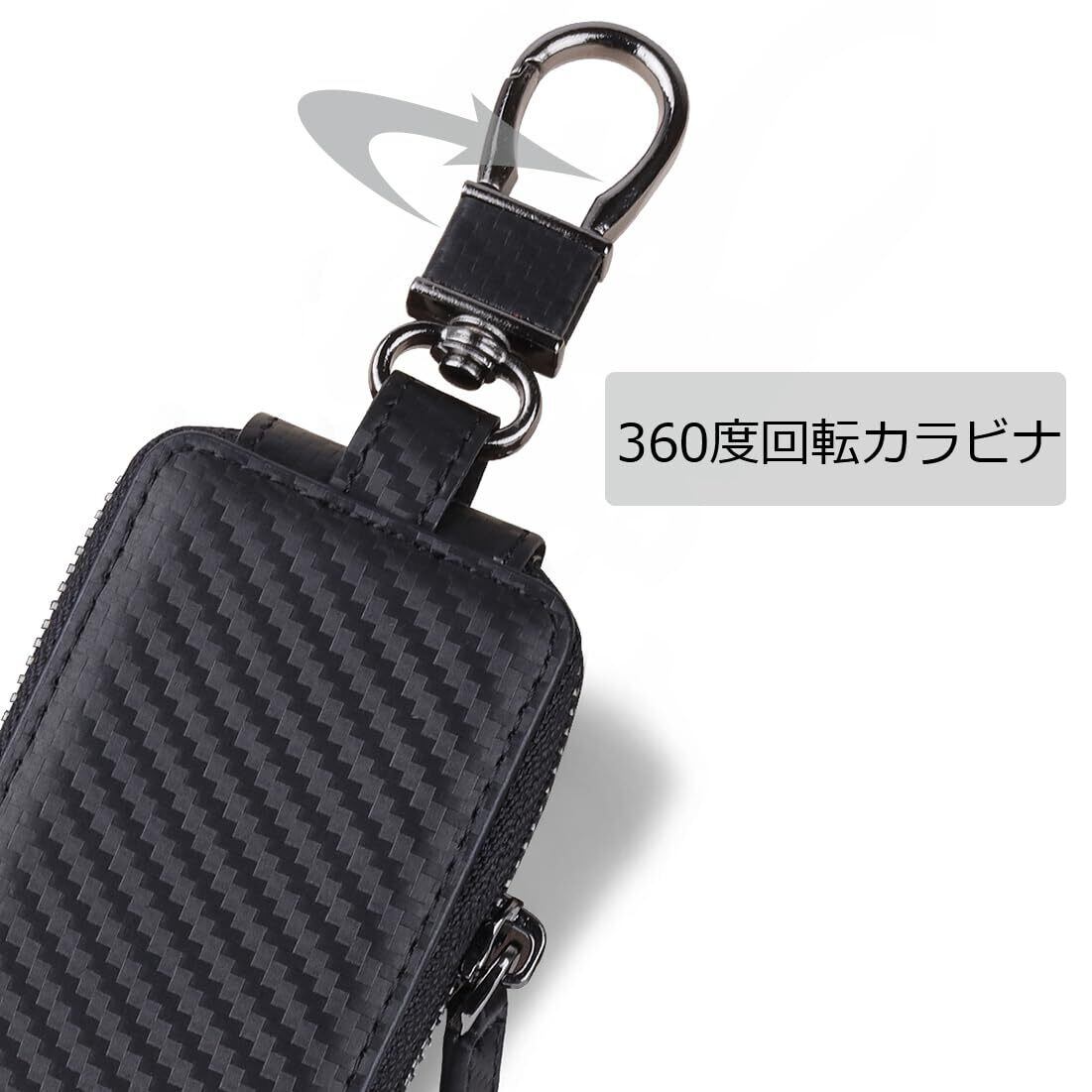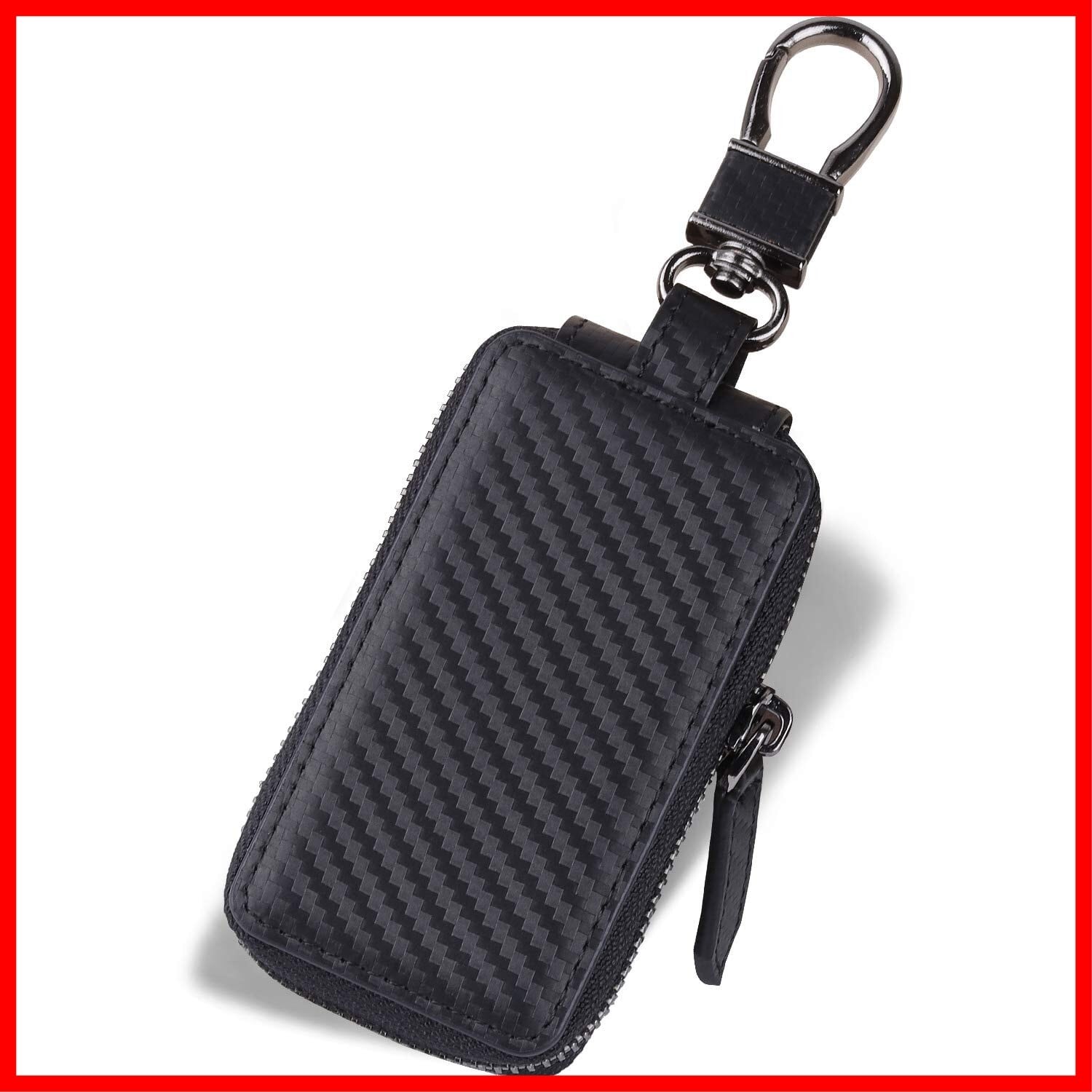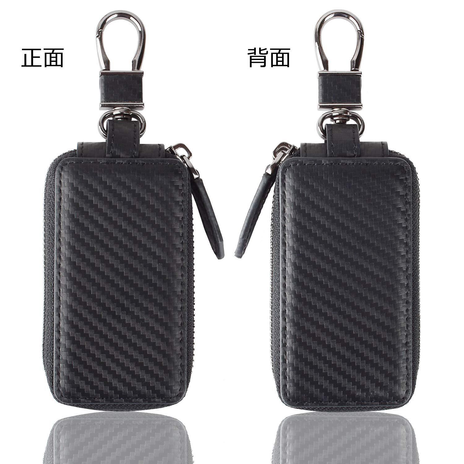 [VISOUL] スマートキーケース カーボンレザー キーケース メンズ 本革 U字ファスナーカバー型 キーケースレディース カラビナ付き 車キーカバー C革上下開け ブラック