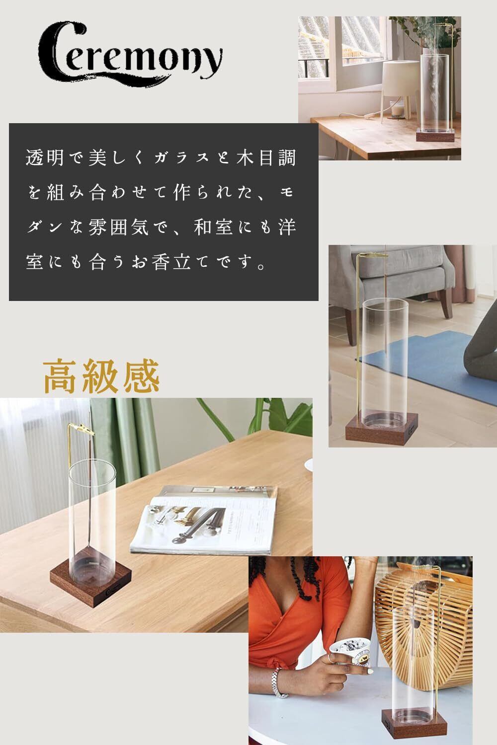 CEREMONY お香立て 灰がこぼれない 御洒落 ガラス高さUP 長香にも対応 香炉 線香立て 仏壇 書斎 瞑想 玄関先(お香は付いていません)