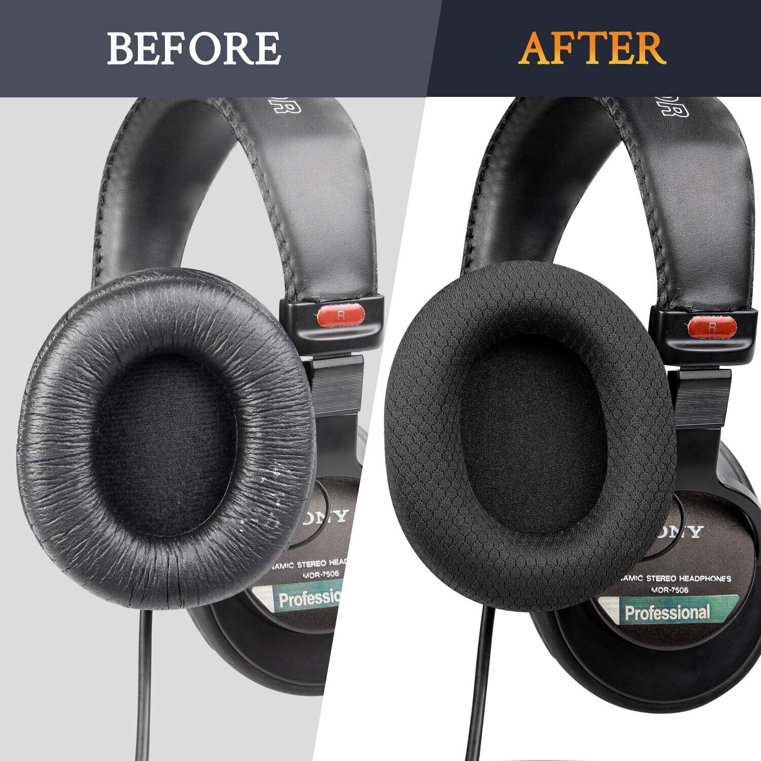 SOULWIT イヤーパッド メッシュファブリック SONY MDR-CD900ST / MDR-7506 / MDR-V6 / MDR-V7 ヘッドホン 用 交換 イヤークッション ノイズアイソレーションフォーム イヤーカップ - ブラック | hananoki
