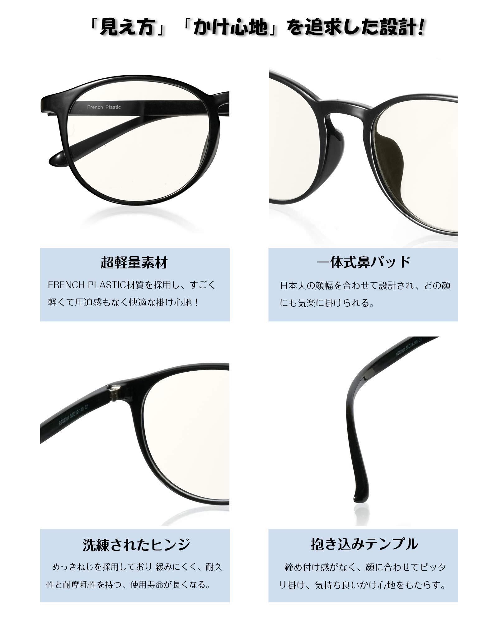 【軽い掛け心地】超軽量弾力「フランス プラスチック」材質を採用し、思ったよりすごく軽くて圧迫感もなく快適な掛け心地!毎日使ってももちろん!日本人の顔幅を合わせて設計され、どの顔にも気楽に掛けられる!