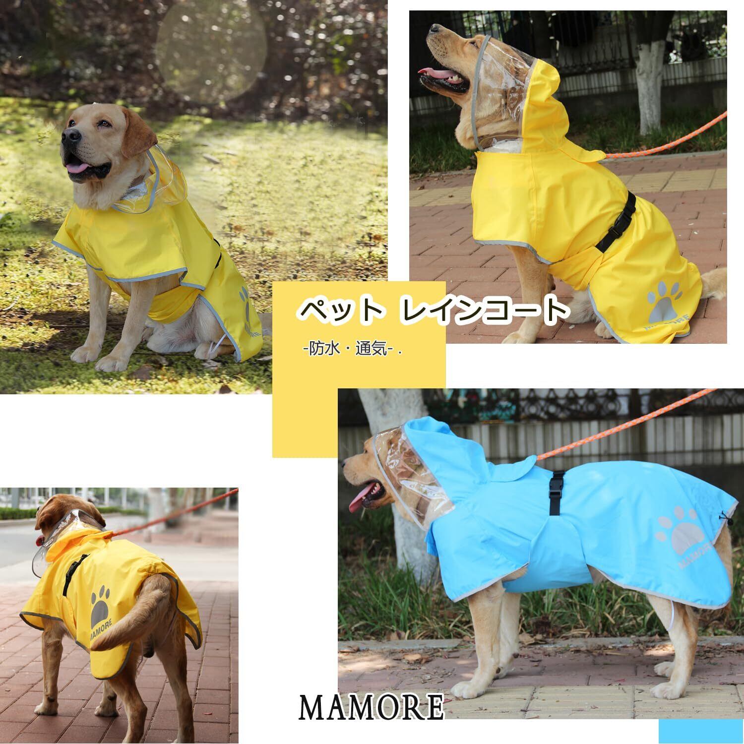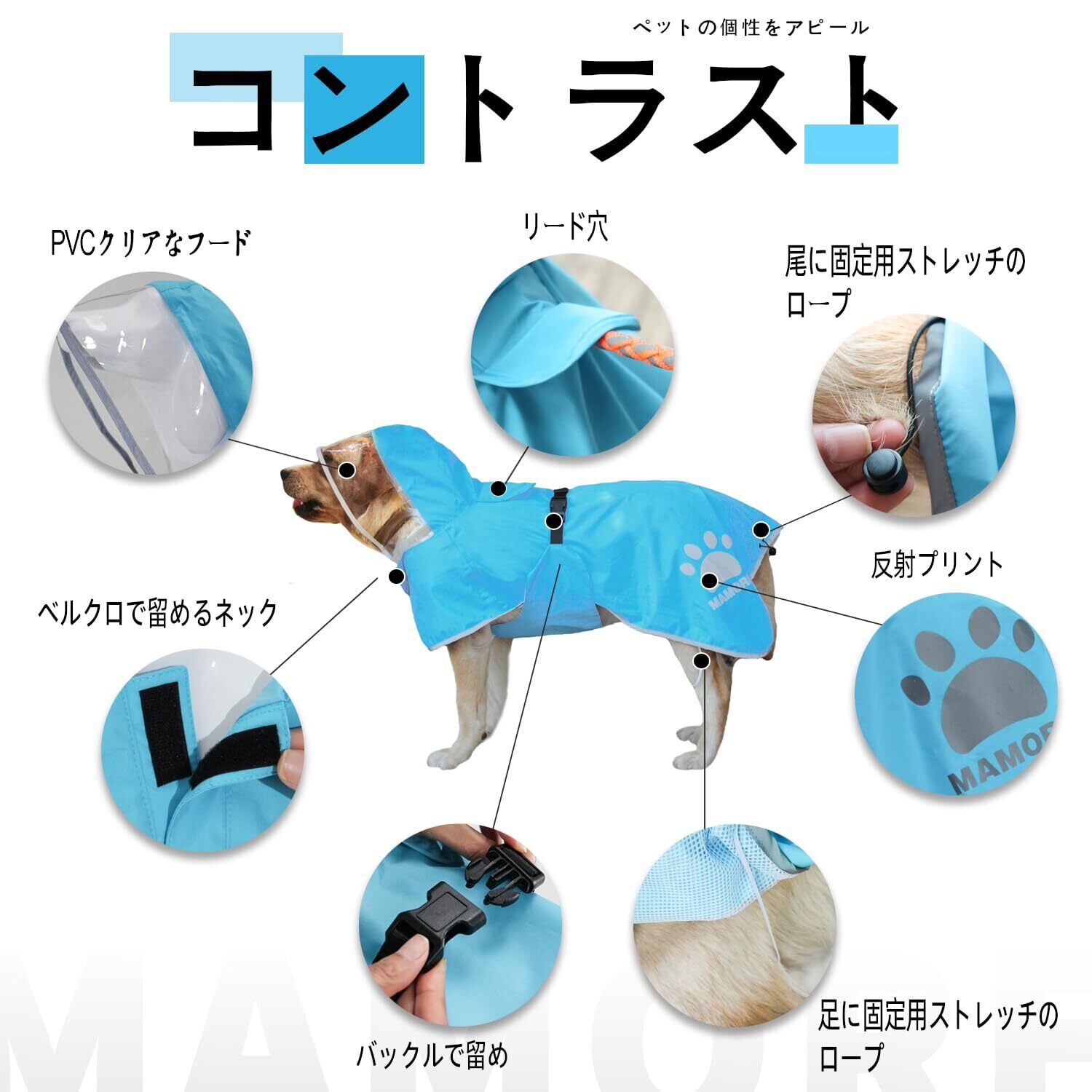 MAMORE 犬用レインコート かっぱ ポンチョ 防水 撥水 通気 軽量 ドッグ ジャケット ペット雨具 小型犬 中型犬 大型犬 脱着簡単 反射 調整 収納可 メッシュ裏 リード穴 (ブルー, S)