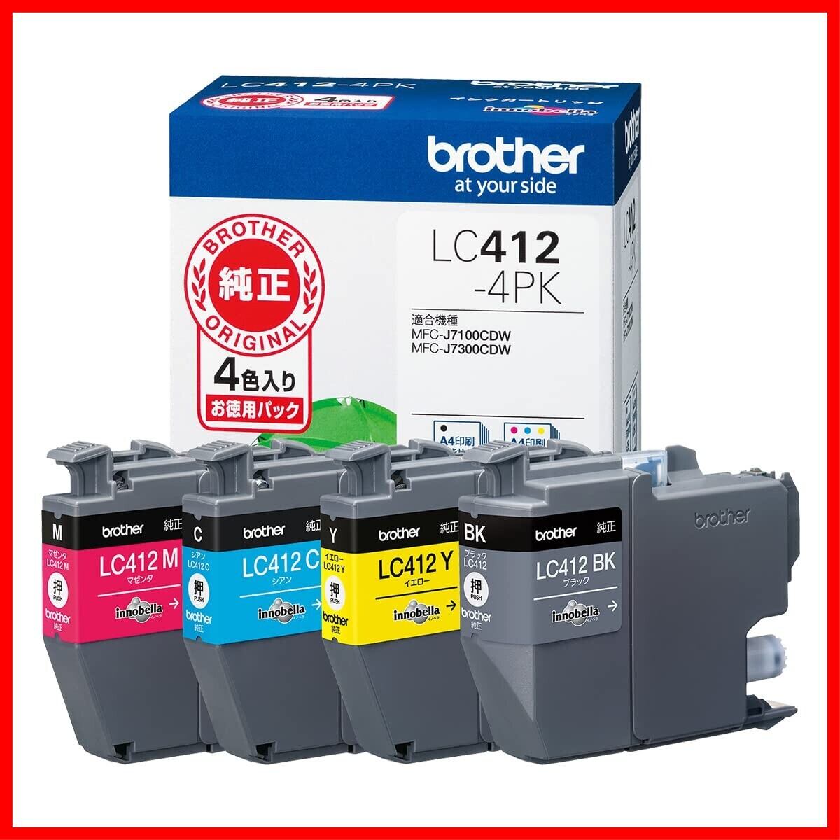 ブラザー工業 インクカートリッジ4色パックLC412-4PK対応型番:MFC-J7300CDW、MFC-J7100CDW他 小