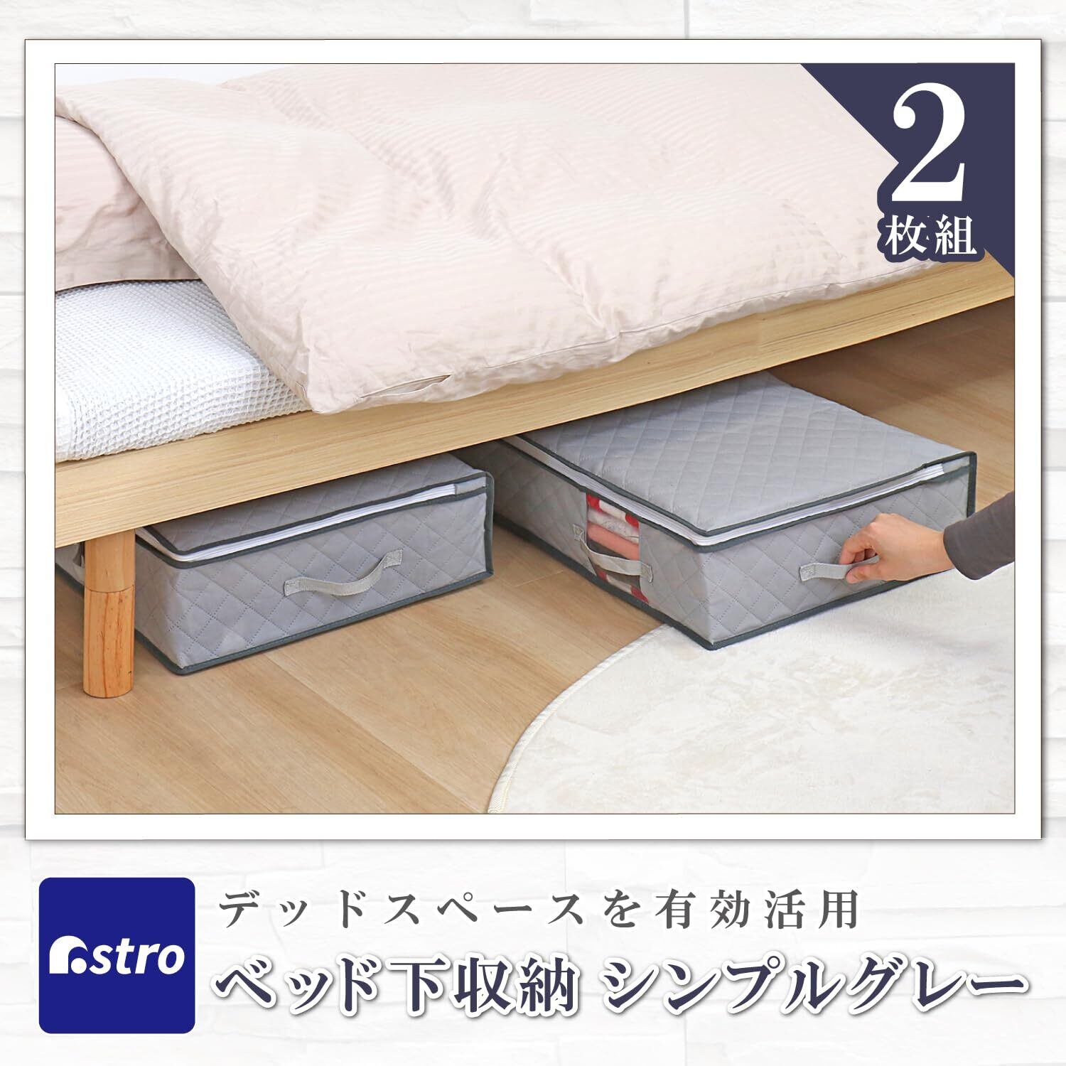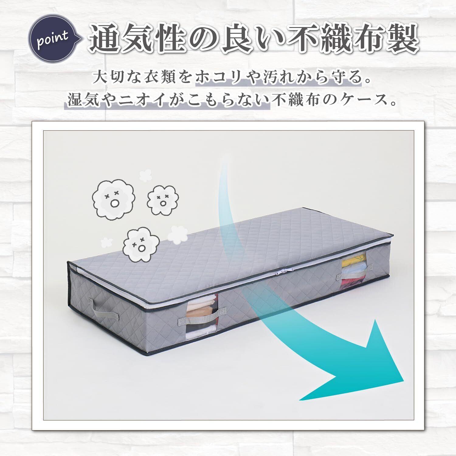 アストロ ベッド下収納 スキマ収納 通気性の良い不織布がホコリなどの汚れをガード 中身が見える透明窓付き 衣類収納 洋服 収納ケース 収納ボックス 衣装ケース 収納袋 クローゼット ベッド下 隙間収納 薄型 スリム グレー 611-63