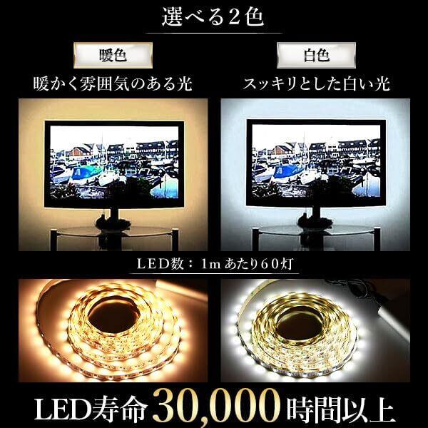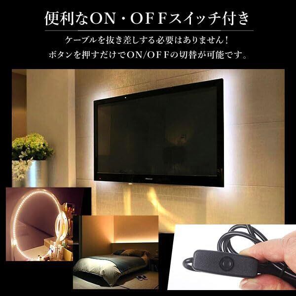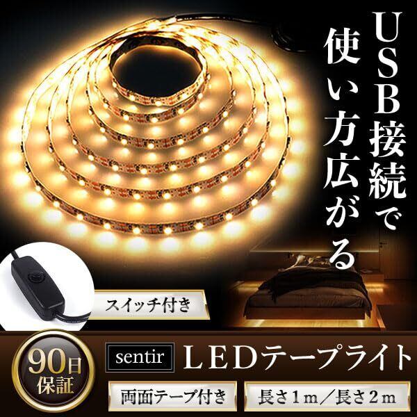 LEDテープライト テープライト LED USB スイッチ付き 室内 1m 2m 3m 4m 5m USB式 間接照明 暖色 白色 おしゃれ ストリングライト DIY ライトテープ 車 室内 (暖白色, 2m)