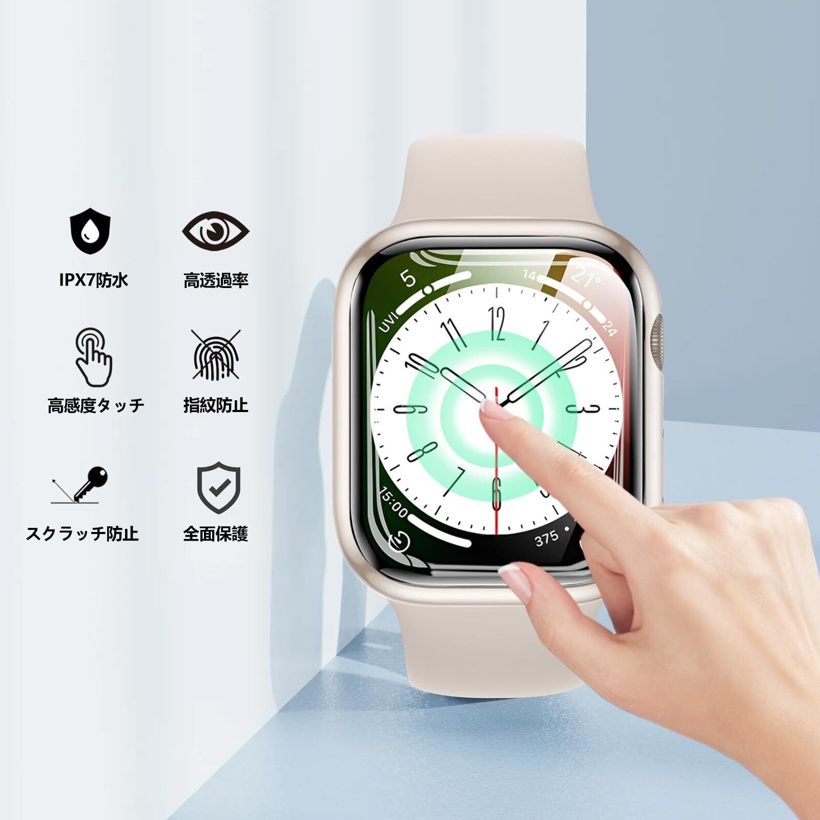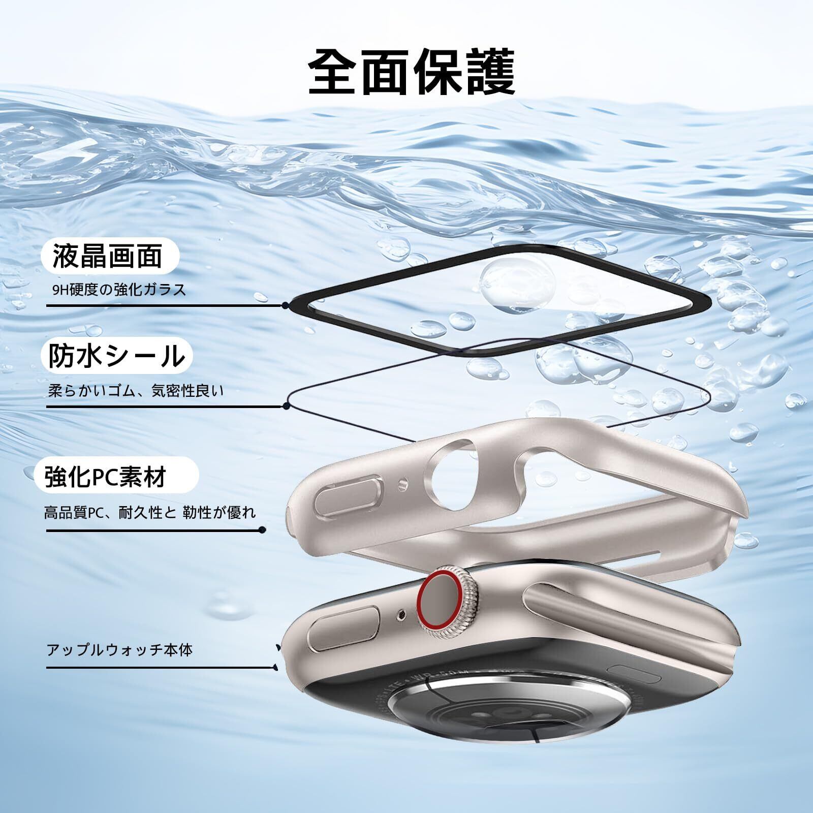 【防水・防塵】シーリングリング内蔵したApple Watchケース、Apple Watchの画面にぴったりとフィットし、水の浸入を防ぎます。ほこりを完全に防ぎ、ケースを取り外して水を拭くすることを繰り返す必要はありません。疎水性撥油性抜群の強化ガラス表面により、カバー面に水が溜まらず、シャワー、手洗い、発汗、運動、雨など、日常の使用に適しています。(ご注意:ダイビングなどの深層水耐性には適しません。)