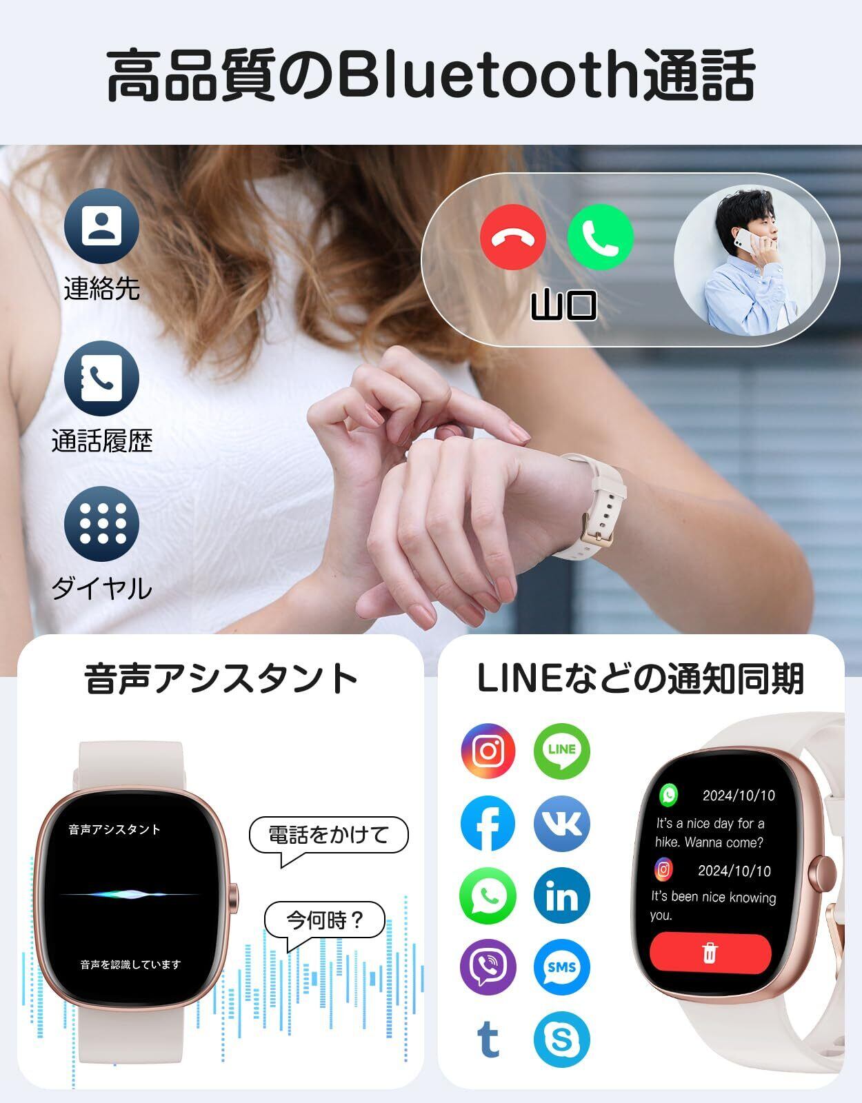 GRV スマートウォッチ iPhone アンドロイド対応 通話機能付き 2025新登場 腕時計 Smart Watch 長持ちバッテリー Line 着信通知 100種類運動モード 腕上げ点灯 IP68防水 DIY文字盤 日本語アプリ 説明書