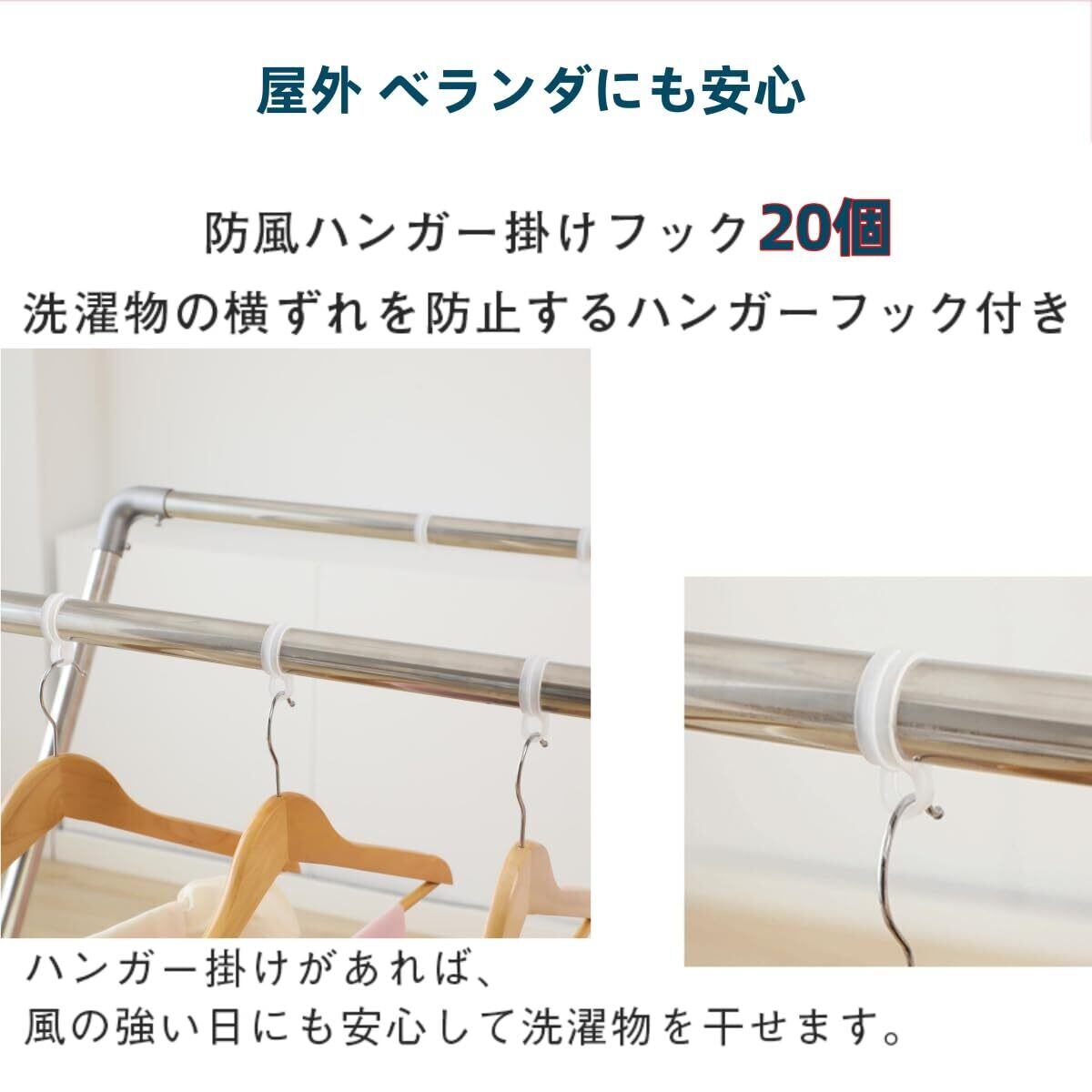 【高耐荷重で大容量】最大75kgの重量に耐えることができ、重い衣類やアクセサリーを掛けても揺れたり曲がったりすることはありません。家族はもちろん、1人暮らしのまとめ洗いにもおすすめ。ダブルバーで空気の通り道ができるから、短時間でふっくら乾かせる。ハンガー掛けを移動させれば、布団を干しても空いたスペースに洗濯物がたっぷり干せる。