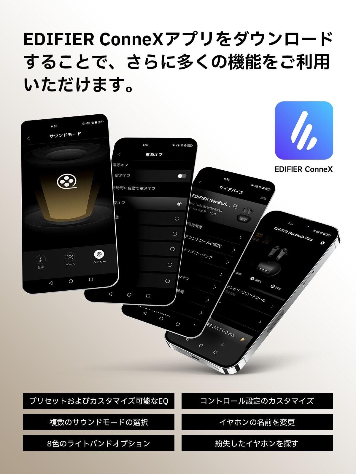 Edifier NeoBuds Plus ワイヤレスイヤホン ハイブリッドANC 48dBノイズキャンセリング/Bluetooth 5.4/ワイヤレス充電/ハイレゾ/LDAC対応/最大47時間再生/マルチポイント接続/外音取り込み/IP54防水規格/6マイクAI通話/専用アプリ/装着検出機能 ブラック | hananoki