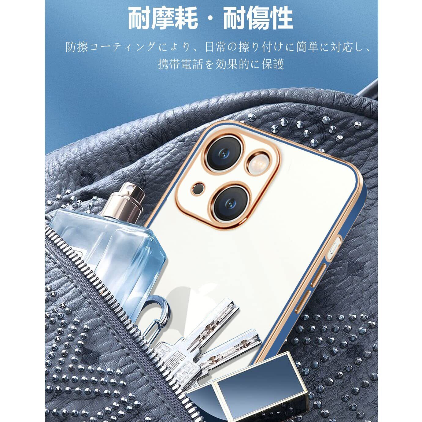 iPhone13 ケース クリア 透明 アイフォン13 カバー メッキ加工 耐衝撃 TPU ソフト 薄型 軽量 ストラップホール付き 落下防止 ワイヤレス充電 (ホワイト)